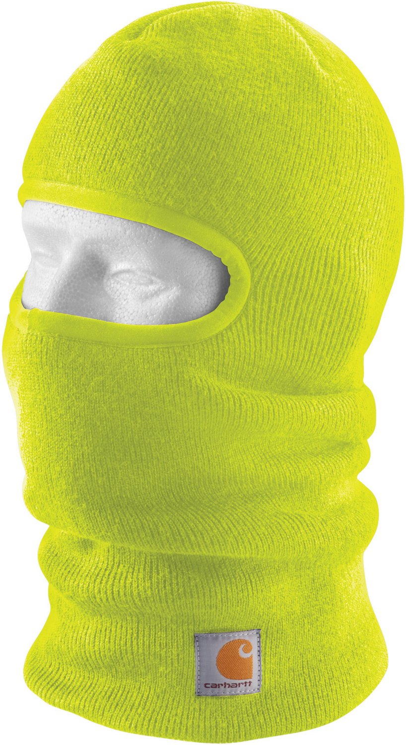 Wear the Carhartt Men's Knit Insulated Face Mask to achieve protection and warmth. Made with 100% acrylic for durability, this face mask comes with a long neck to deliver weather protection. The face mask also features a Carhartt label sewn on the front for added style.