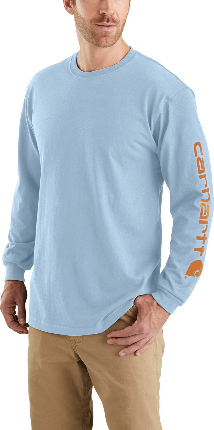 Great for keeping you warm on the job site, the Carhartt Men's Long Sleeve Graphic Logo T-shirt is made of 100% cotton knit jersey for a soft feel and comfortable wear and features rib-knit cuffs and a rib-knit crew neck with a tagless neck label. Side-seam construction helps to minimize twisting. Carhartt logo printed on the left sleeve.