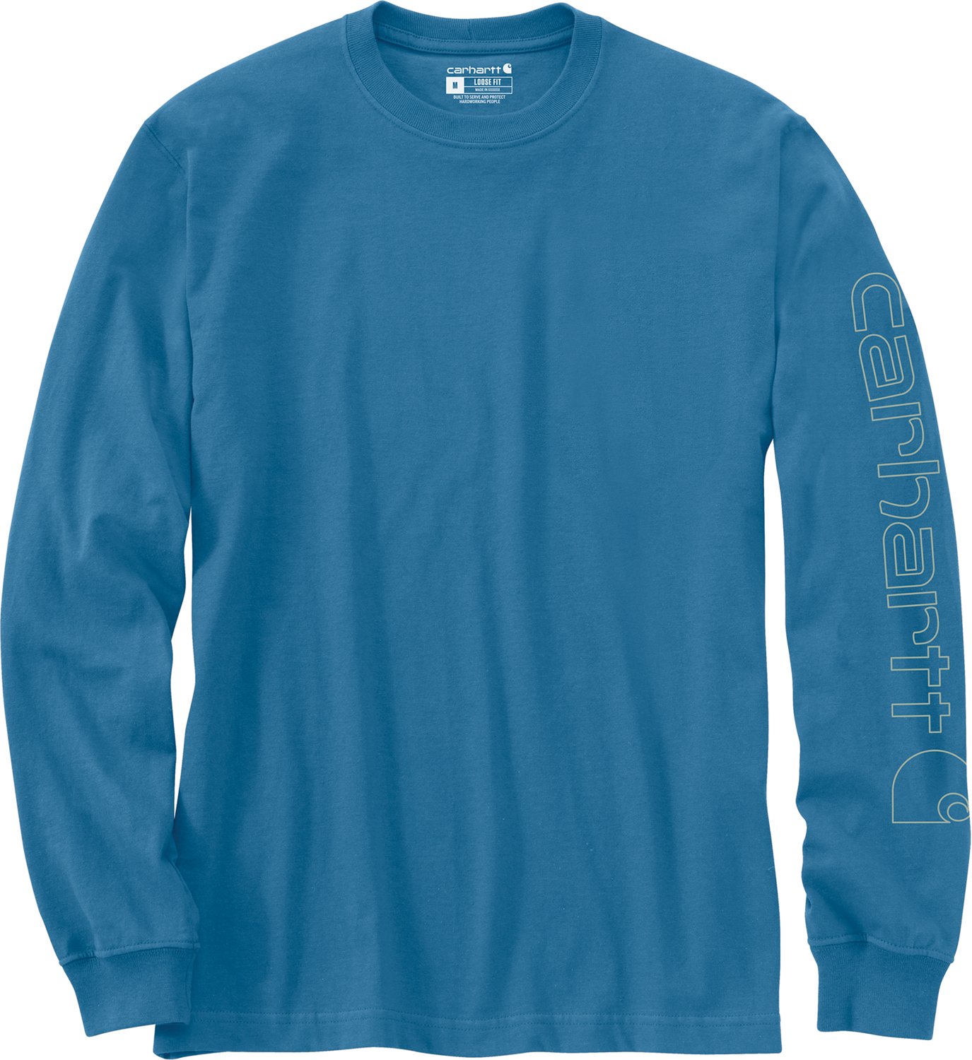 Great for keeping you warm on the job site, the Carhartt Men's Long Sleeve Graphic Logo T-shirt is made of 100% cotton knit jersey for a soft feel and comfortable wear and features rib-knit cuffs and a rib-knit crew neck with a tagless neck label. Side-seam construction helps to minimize twisting. Carhartt logo printed on the left sleeve.