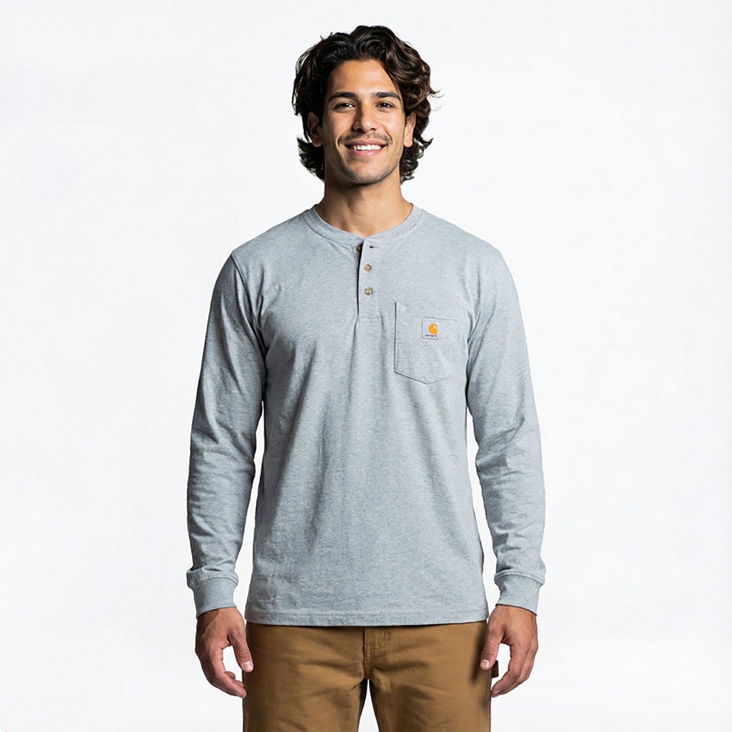 The Carhartt Men's Long Sleeve Workwear Henley is constructed from cotton jersey and features a rib-knit collar with a 3-button closure and a left chest pocket. Side-seamed construction minimizes twisting and maximizes comfort.