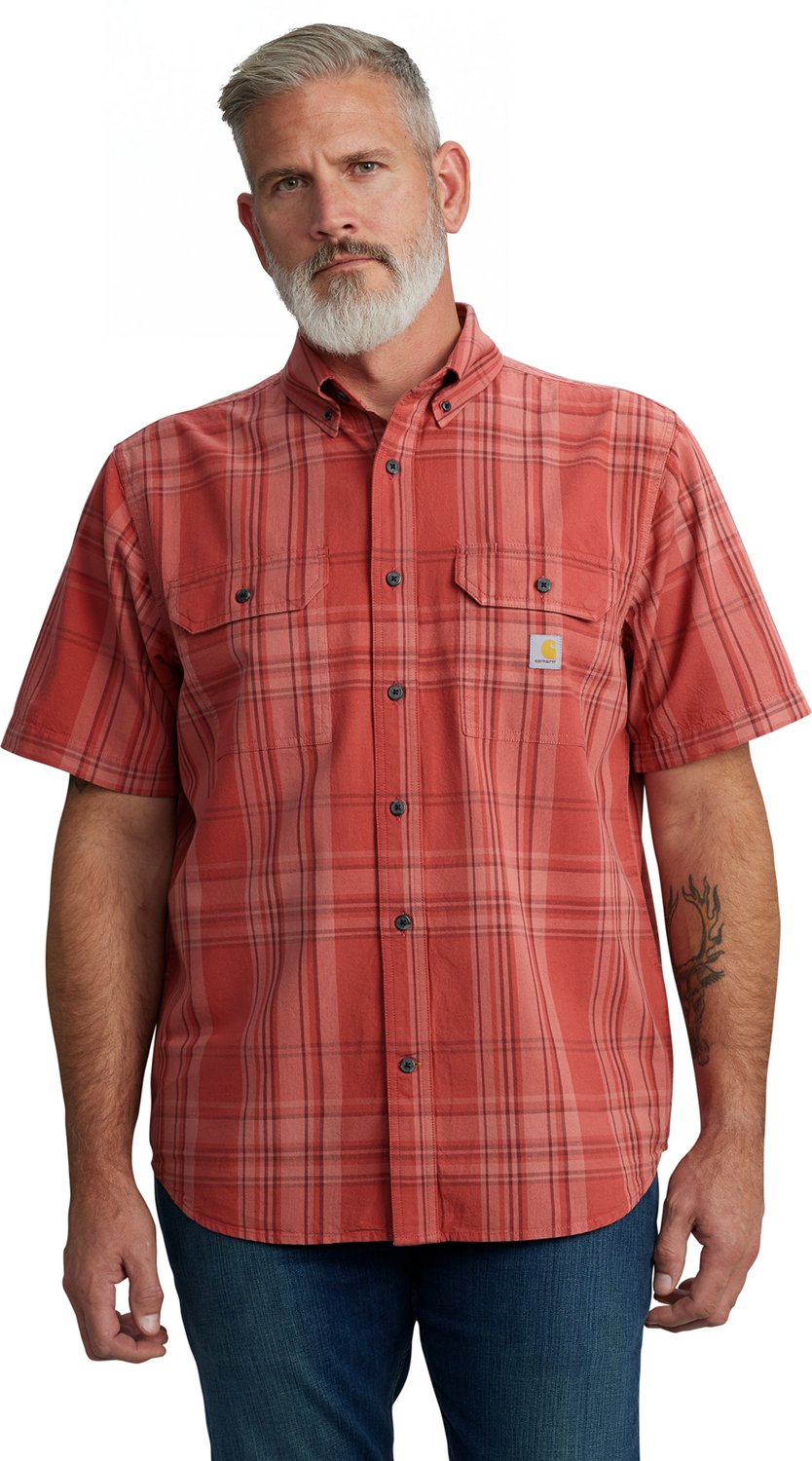 Get ready for the work day with the Carhartt Men's Midweight Plaid Button Down Shirt. The cotton ringspun chambray fabric provides a comfortable feel, while the garment wash delivers a soft finish and reduced shrinkage. The plaid pattern offers a stylish look.