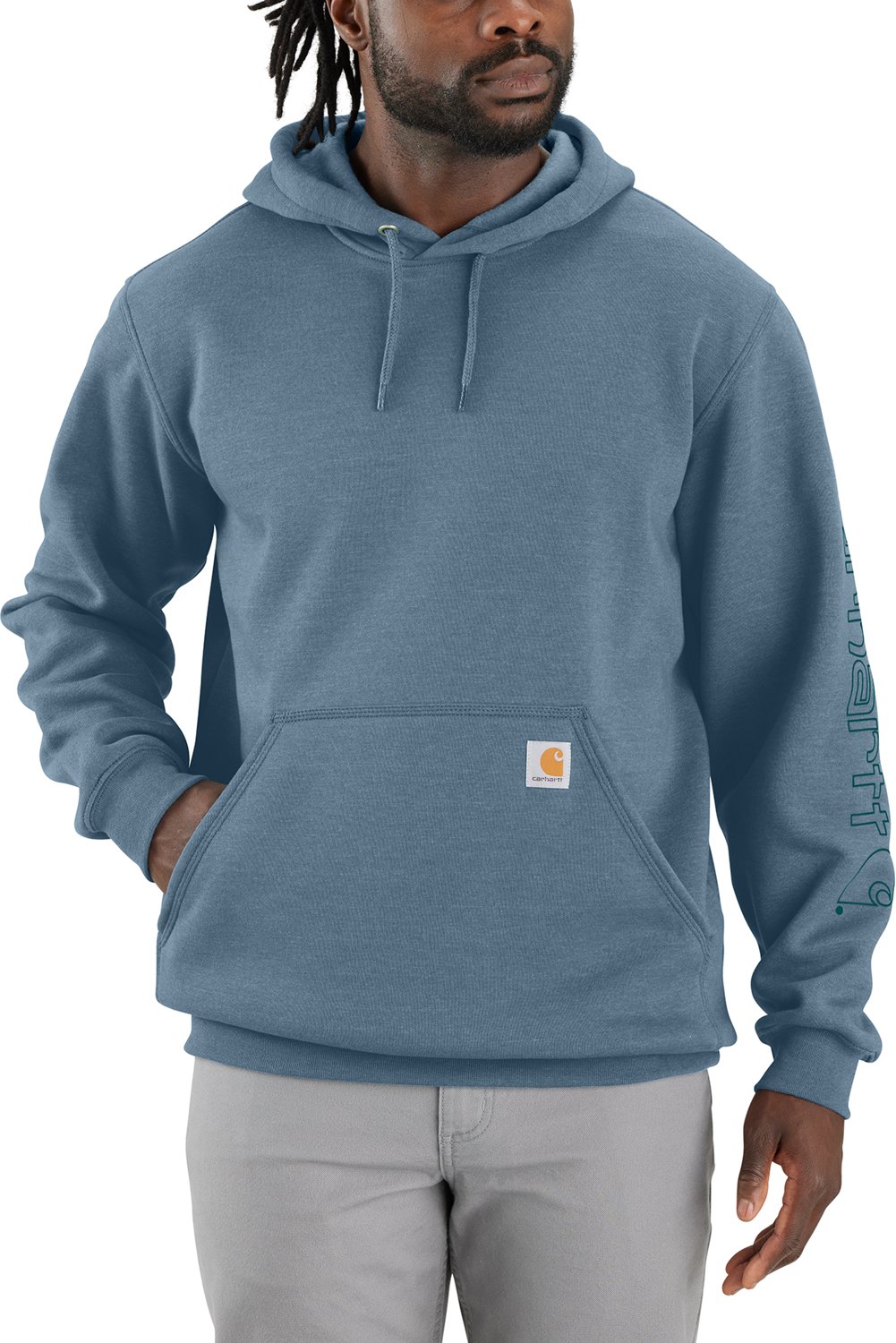 • Carhartt Men's Loose Fit Midweight Signature Sleeve Logo Hooded Sweatshirt