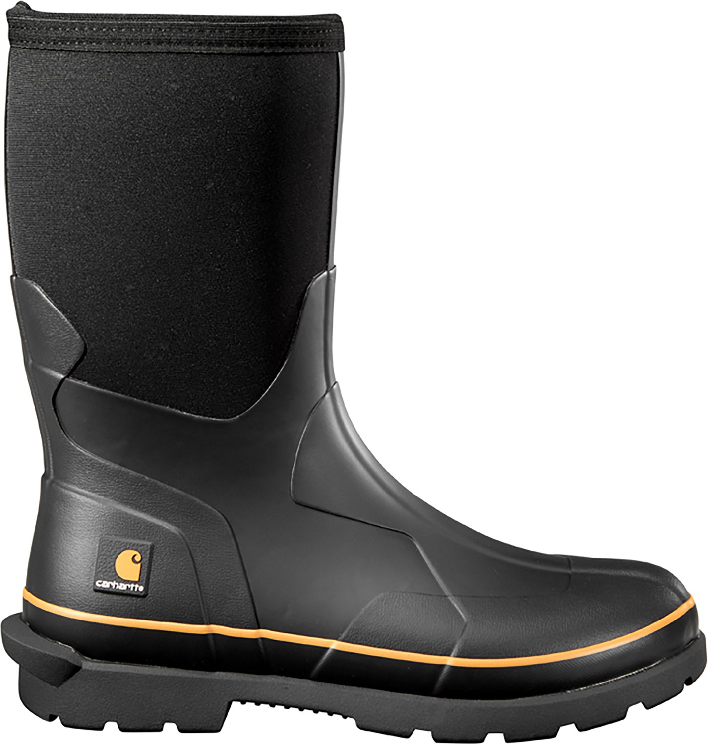 Stay fresh while working on the farm with the Carhartt Men's Mudrunner Rubber 10 in Work Boots. Designed for messy work environments, these waterproof rubber and neoprene boots have a moisture-wicking liner to keep you dry and clean. The outsoles provide protection, while the arch support technology keeps your feet comfy during long days.