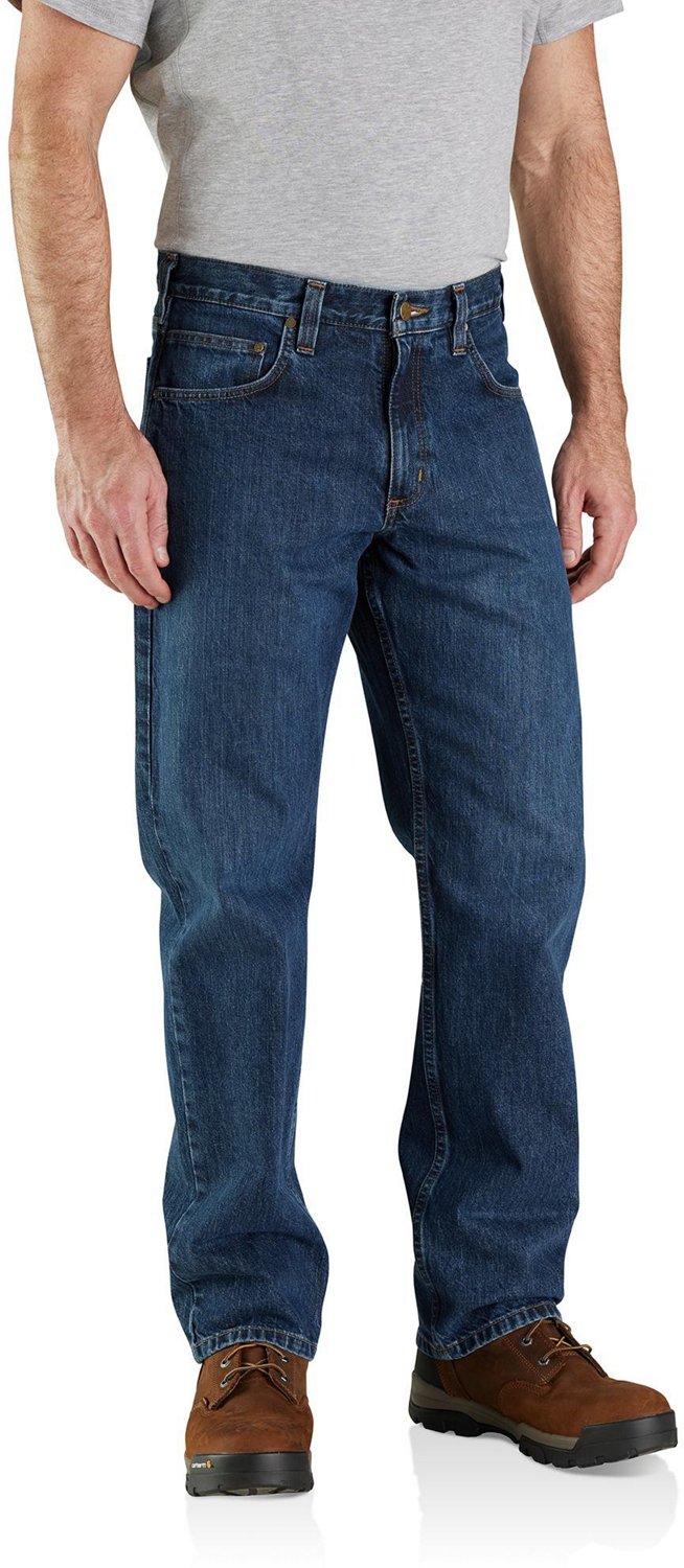 Go to work with the Carhartt Men's Realex Fit 5 Pocket Jeans. The cotton washed denim provides a comfortable feel, while the sewn-on-seam belt loops offer a secure fit.
