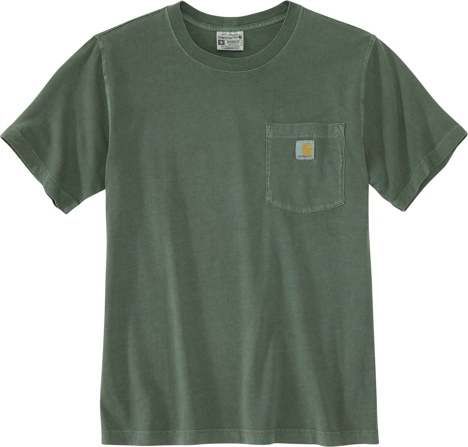 Be covered on the job or during a night on the town with the Carhartt Men's Relaxed Fit Short Sleeve Garment Dyed Pocket T-shirt. The cotton material offers a lightweight and comfortable feel, while the garment-dyed fabric creates a unique worn-in look. This shirt is designed to hold its shape all day and has a side-seam construction to keep twisting to a minimum.