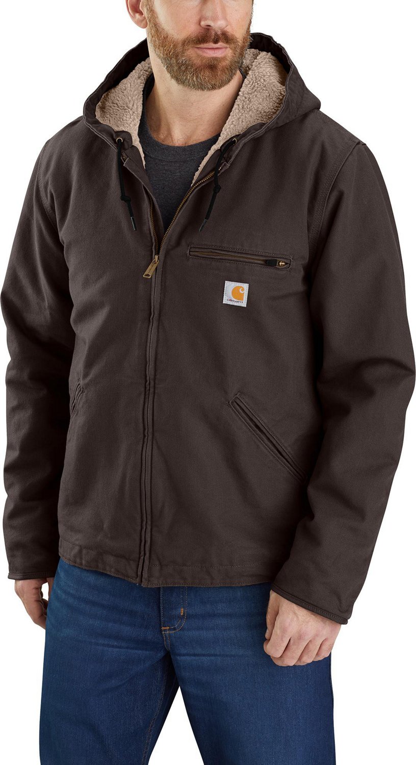 Use the Carhartt Men's Relaxed Fit Washed Duck Sherpa-Lined Jacket to stay warm. Made of 100% ringspun washed cotton duck, this jacket comes lined with a sherpa interior to enhance warmth. The jacket also features a Carhartt label sewn onto the pocket to add a touch of style.