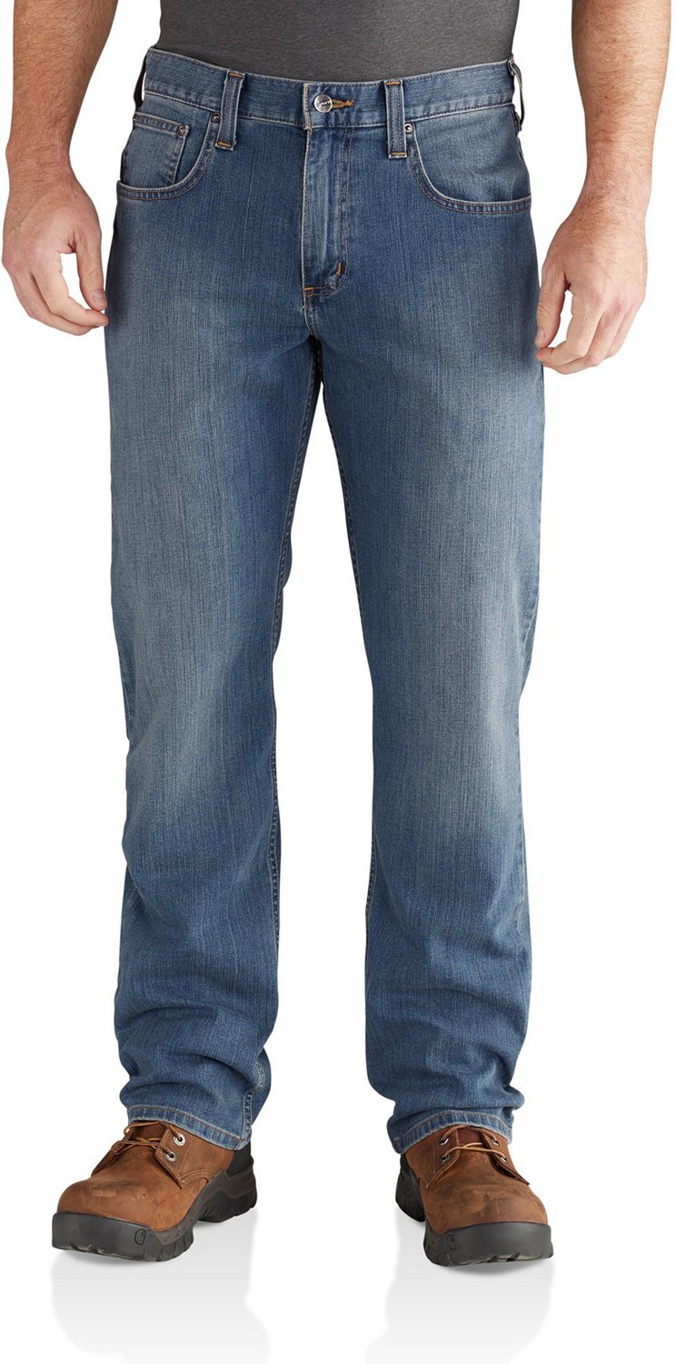 Be comfortable on and off the job in the Carhartt Men's Rugged Flex Relaxed Fit Straight-Leg Jeans. The 85% cotton, 14% polyester and 1% spandex denim construction offers comfort and flexibility, and the Rugged Flex® technology provides a durable, stretchy fit.