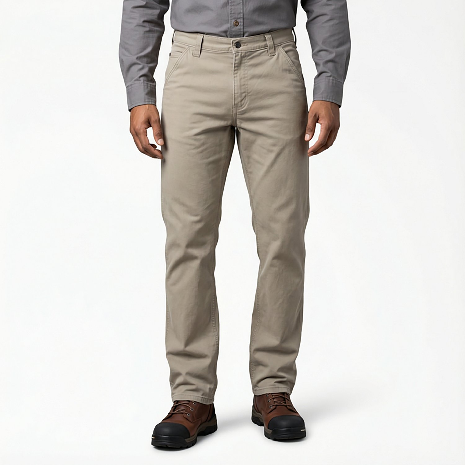 Tackle tough tasks on the jobsite with the Carhartt Men's Rugged Flex Rigby Dungaree Work Pant, which features stretchy, mobility-promoting Rugged Flex® cotton and spandex canvas fabric. This pant also boasts pockets at the front, rear and right side, so you can store essential workplace items. Sewn-on-seam belt loops help you lock in the right fit.