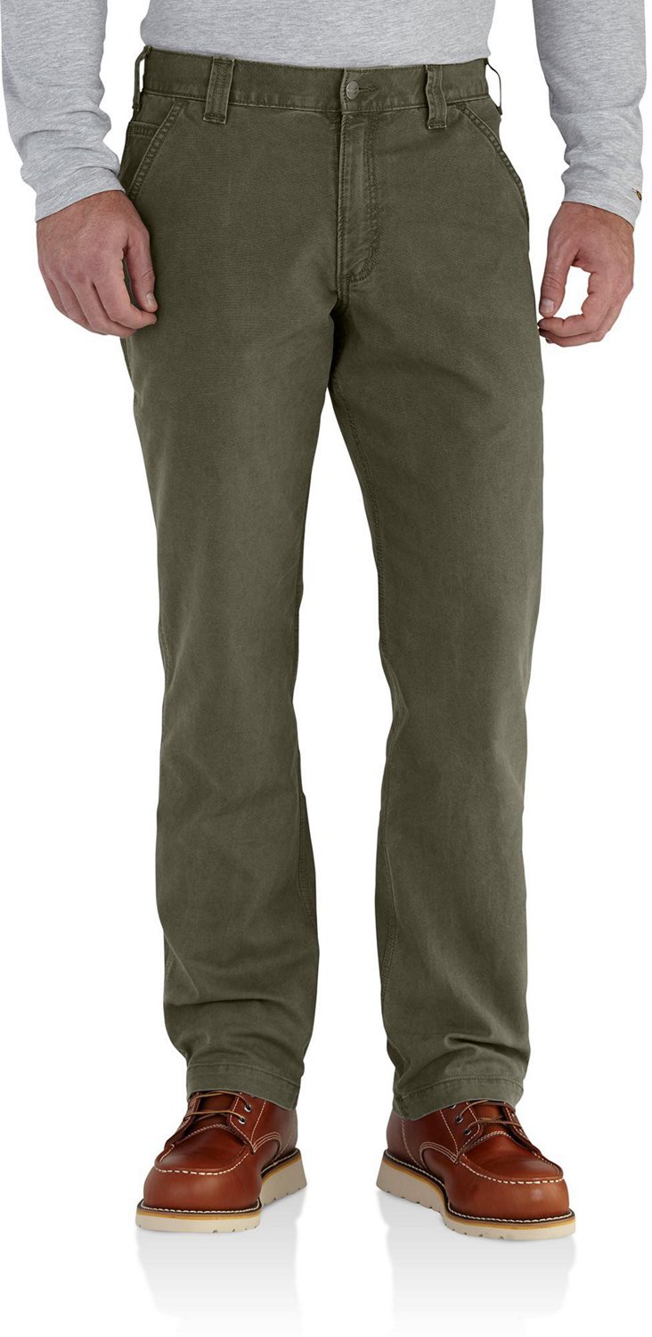 Tackle tough tasks on the jobsite with the Carhartt Men's Rugged Flex Rigby Dungaree Work Pant, which features stretchy, mobility-promoting Rugged Flex® cotton and spandex canvas fabric. This pant also boasts pockets at the front, rear and right side, so you can store essential workplace items. Sewn-on-seam belt loops help you lock in the right fit.