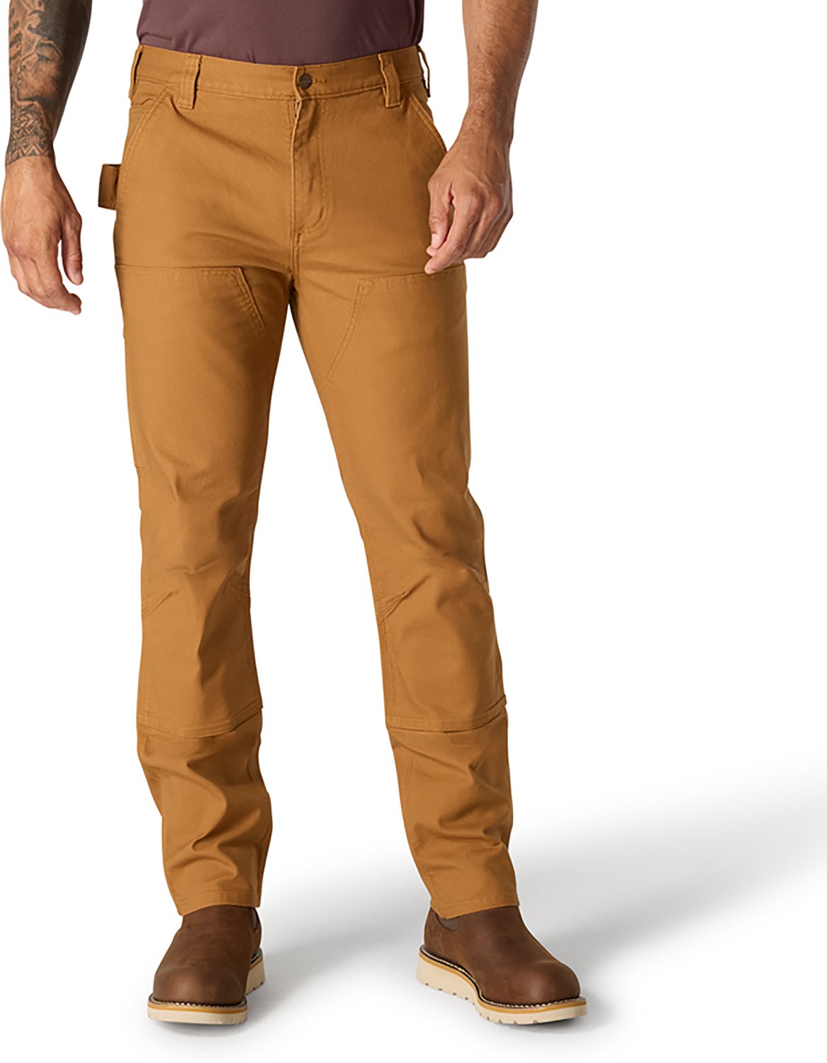 99% cotton, 1% Spandex duck construction and heavy-hauling reinforced, lined back pockets for durability