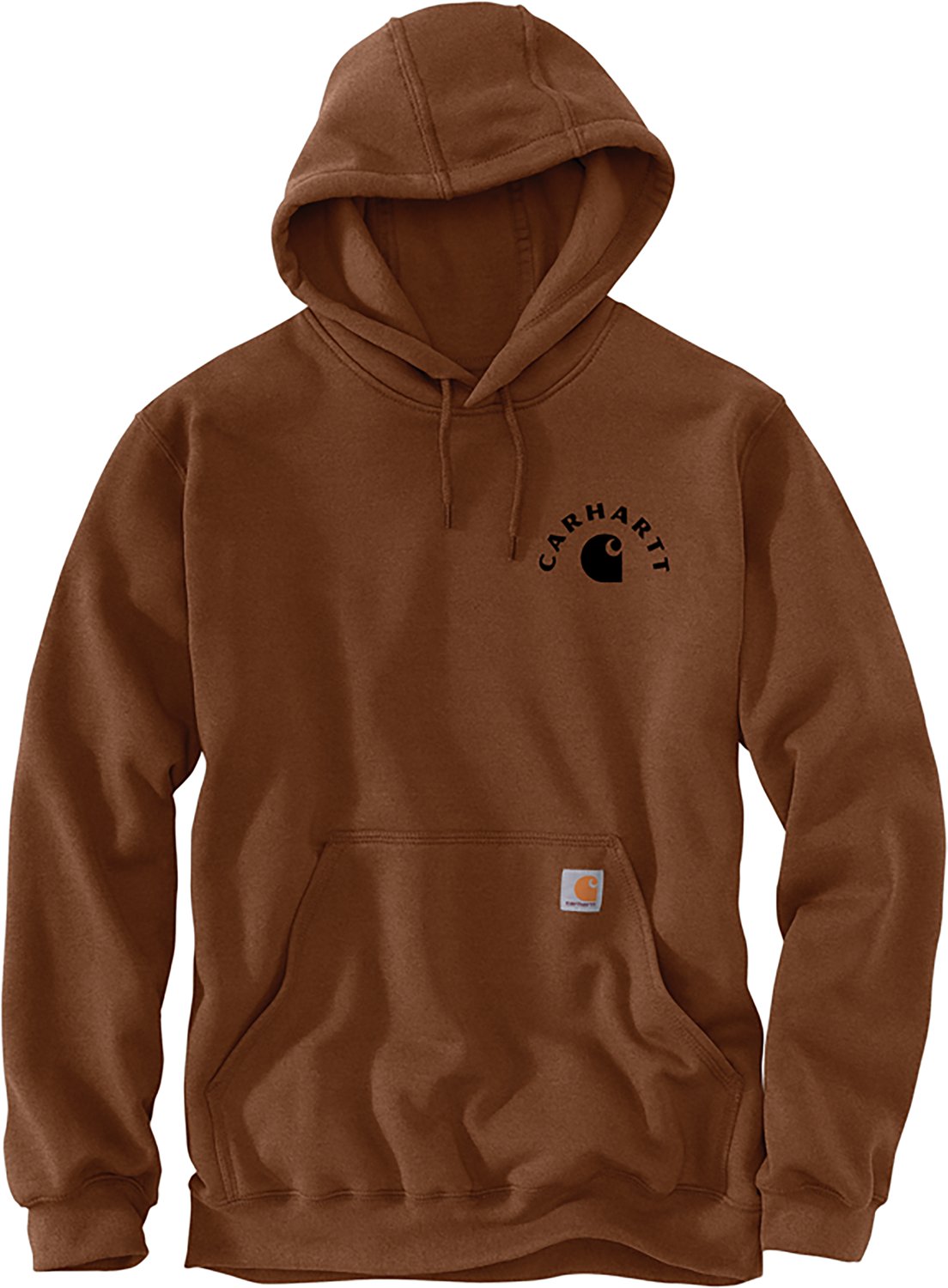 Look your best when you wear the Carhartt Men's Sawyer Work Sweatshirt. It is made of 60% cotton and 40% polyester. The long sleeves keep you warm, and its hood offers additional coverage. The spandex-reinforced rib-knit cuffs and waist create a comfortable wear.