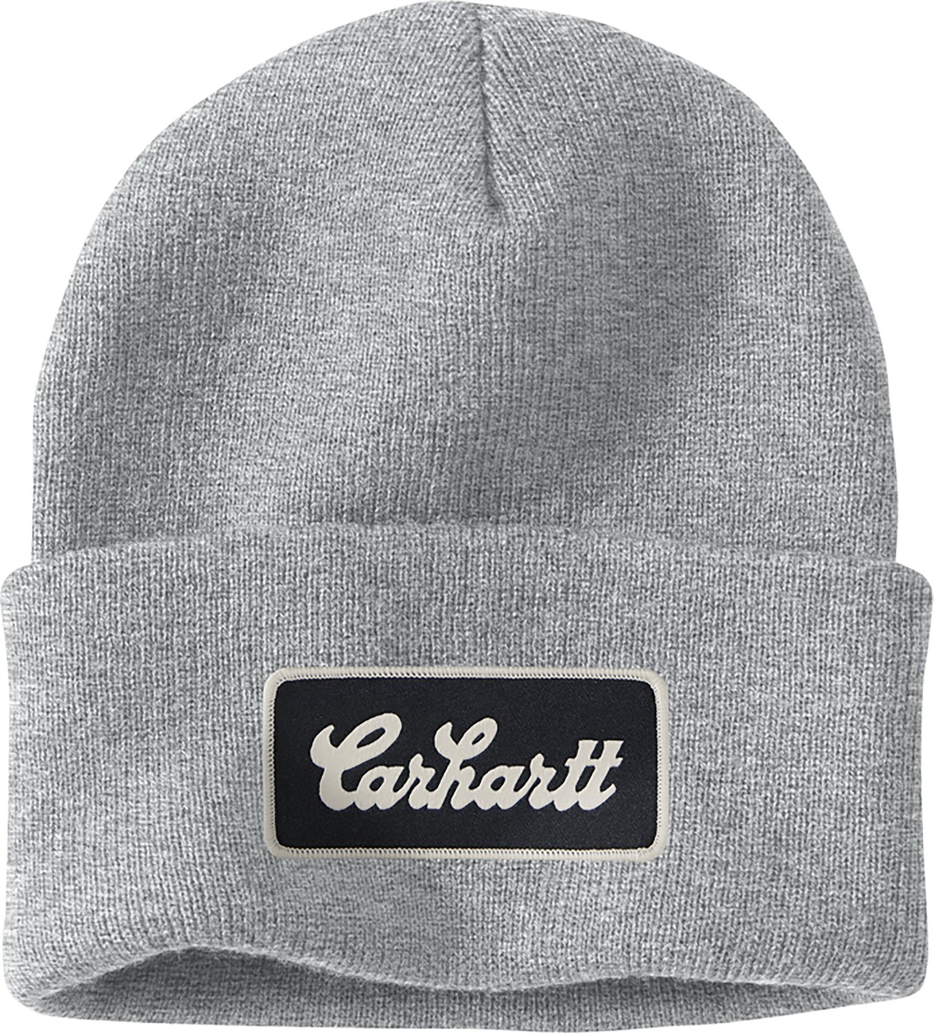 Thanks to its rib-knit acrylic stretch fabric construction and fold-up cuff, this Carhartt Men's Script Patch Beanie ensures your head stays comfortably warm when the weather turns chilly. The Carhartt script patch woven onto the front puts your brand loyalty on proud display.