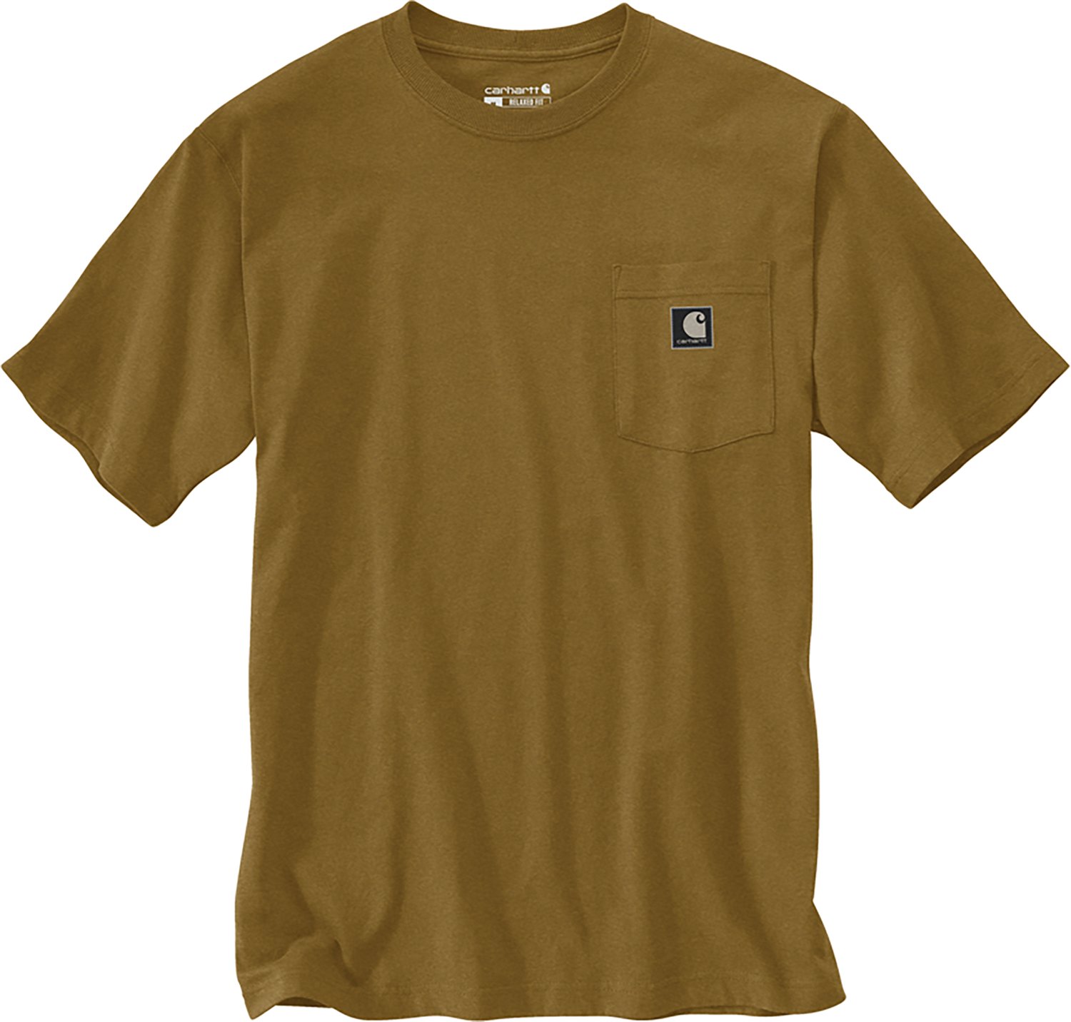 Look your best in the Carhartt Men's Short Sleeve Camo Graphic T-shirt. It is made of 60% cotton and 40% polyester. The pocket with a sewn-on Carhartt label is on the left side of the chest, and its side-seam construction minimizes twisting. The Carhartt camo graphic is on the back.