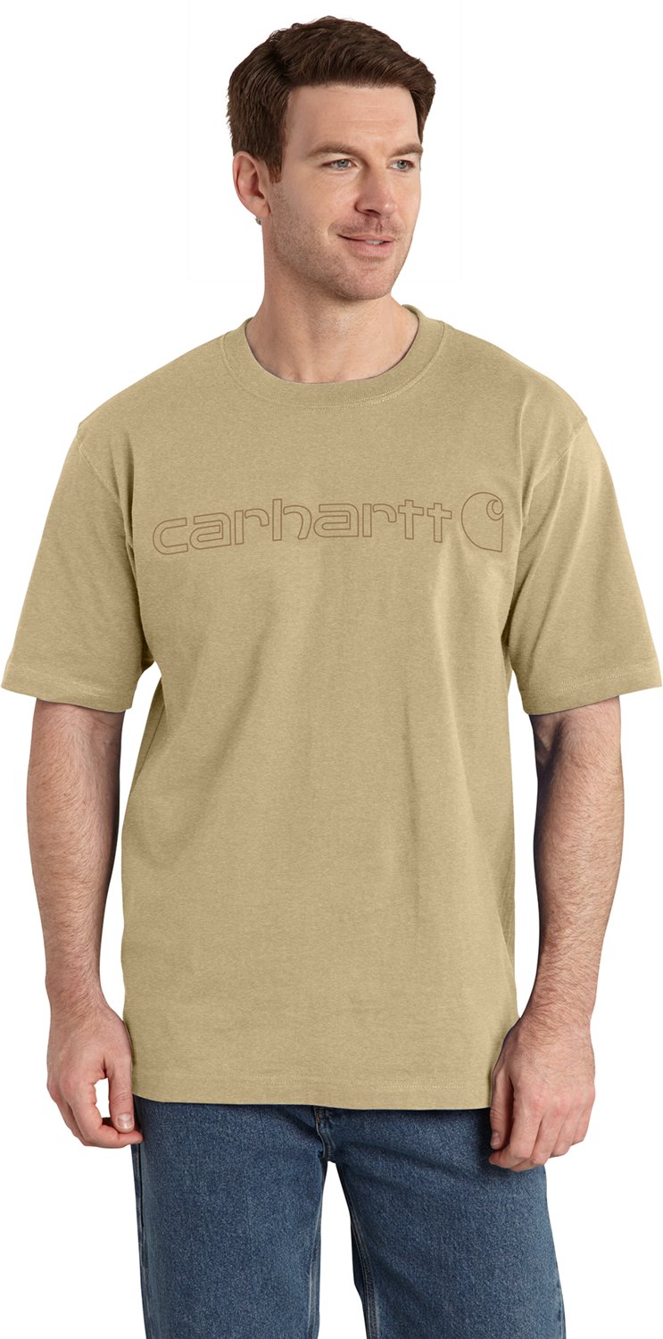 Great for work or casual wear, the Carhartt Men's Short Sleeve Logo T-shirt is made of 100% cotton knit jersey for a soft feel and comfortable wear and features a rib-knit crew neck with a tagless neck label and side-seam construction to help minimize twisting. Carhartt logo printed on the front and back.