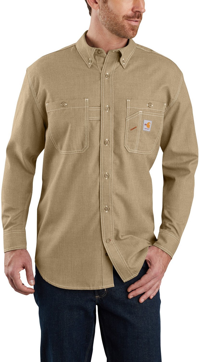 Stay comfortable on the job in the Carhartt Men's TW138 FR Force Original Fit Long Sleeve Shirt. The viscose, nylon and aramid blend fabric offers durability and is flame resistant for safety. The Force® technology wicks sweat, dries fast and fight odors to help you stay dry and fresh, while the Honeycomb weave construction offers a breathable feel for cooling comfort.
