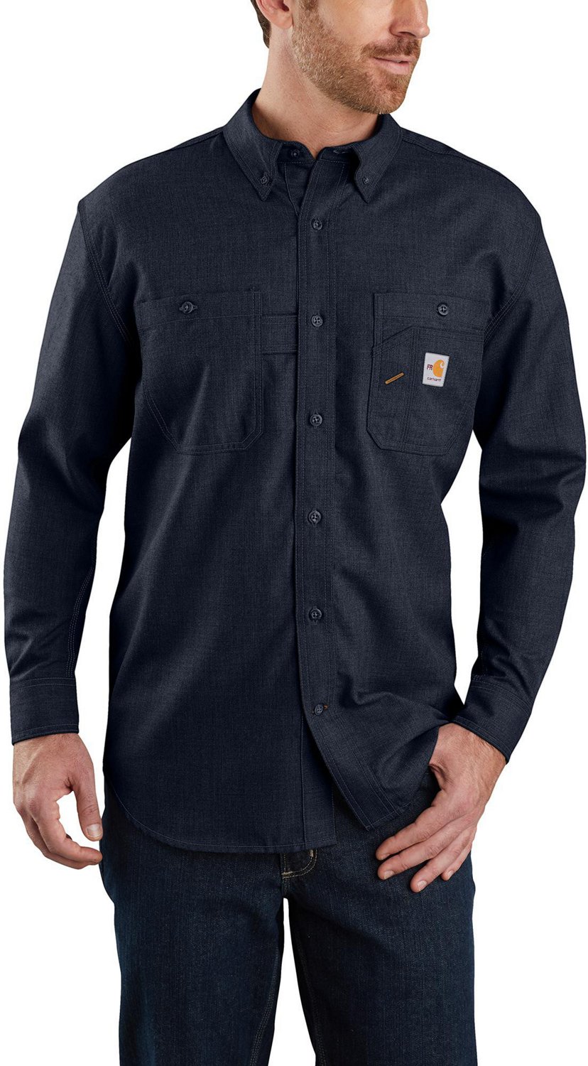Stay comfortable on the job in the Carhartt Men's TW138 FR Force Original Fit Long Sleeve Shirt. The viscose, nylon and aramid blend fabric offers durability and is flame resistant for safety. The Force® technology wicks sweat, dries fast and fight odors to help you stay dry and fresh, while the Honeycomb weave construction offers a breathable feel for cooling comfort.