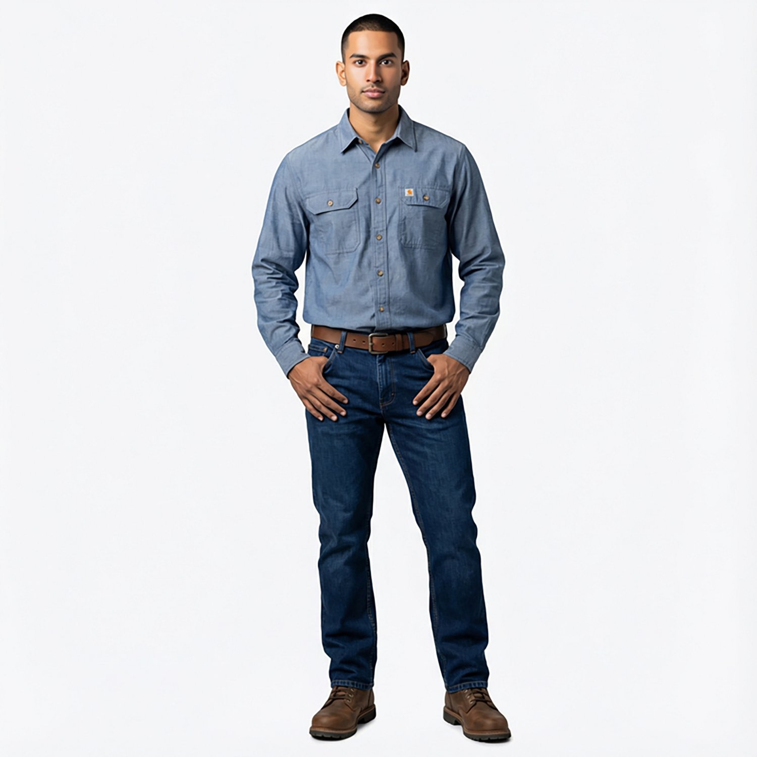 Take on the day in style and comfort wherever you sport the Carhartt Men's TW368 Original Fit Long Sleeve Shirt. The 100% cotton ringspun chambray fabric offers a soft, smooth fit and feel. The shoulder pleats encourage ease of movement. The mitered flap and button closure chest pockets provide secure storage for essentials, while the triple-stitch main seams add strength for lasting wear.