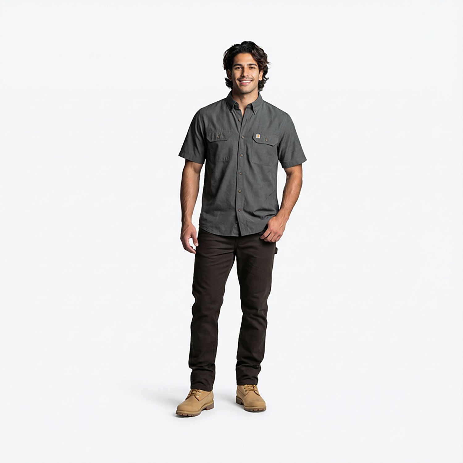 Elevate your everyday look with the comfort and utility of the Carhartt Men's TW369 Original Fit Short Sleeve Shirt. Made from 100% cotton chambray, the shirt offers comfort and lasting wear. Pleated shoulders allow free movement, while the button-down closure delivers a classic look.