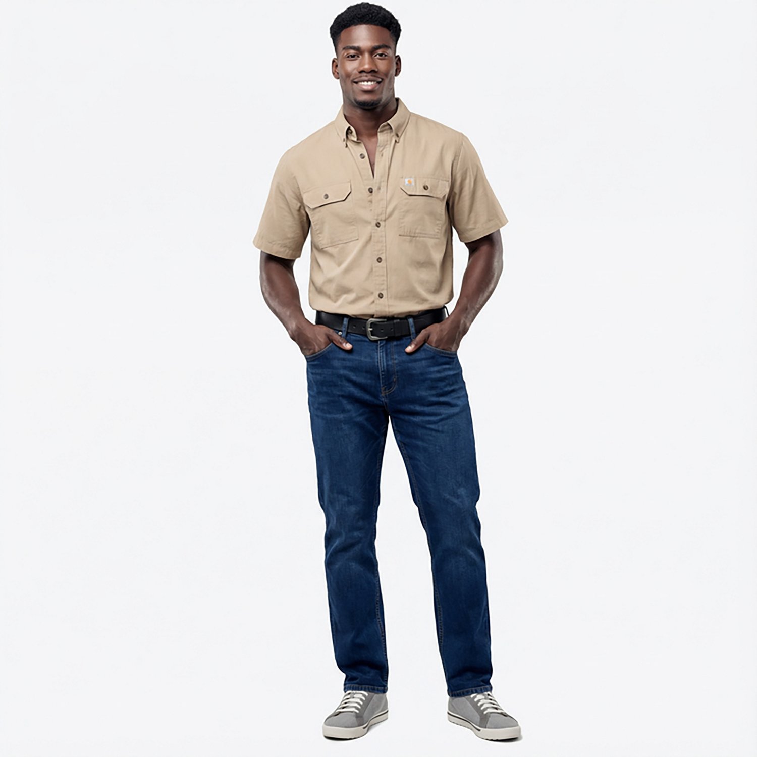 Elevate your everyday look with the comfort and utility of the Carhartt Men's TW369 Original Fit Short Sleeve Shirt. Made from 100% cotton chambray, the shirt offers comfort and lasting wear. Pleated shoulders allow free movement, while the button-down closure delivers a classic look.