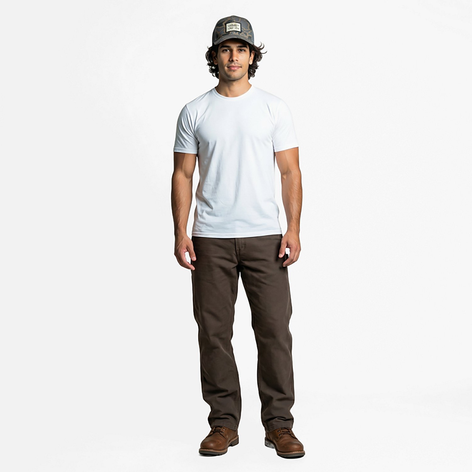 Look your best when you wear the Carhartt Men's Wool Mesh-Back Camo Logo Patch Cap. It is made of 50% wool and 50% polyester. The 100% polyester mesh back enhances breathability, and its FastDry™ technology sweatband keeps you cool for all day comfort. The snapback closure is adjustable.