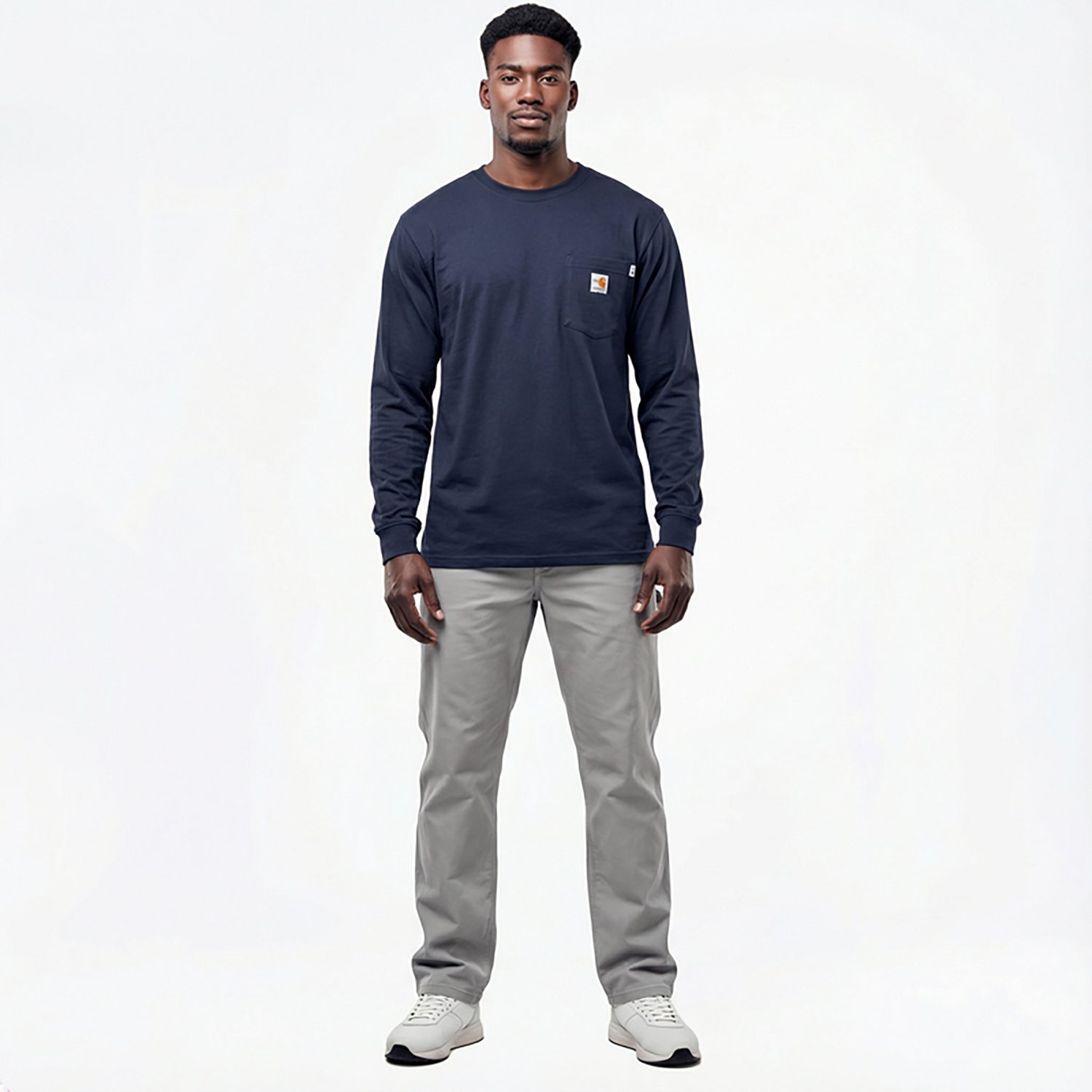 Check off everything on your to-do list while wearing the Carhartt Men's Work Dry® Flame Resistant Long Sleeve T-shirt, which features flame-resistant and moisture-wicking Force™ fabric technology to keep you protected and comfortable throughout the day. Side-seam construction helps minimize twisting and enhances mobility when you're on the move. Meets NFPA 70E requirements.