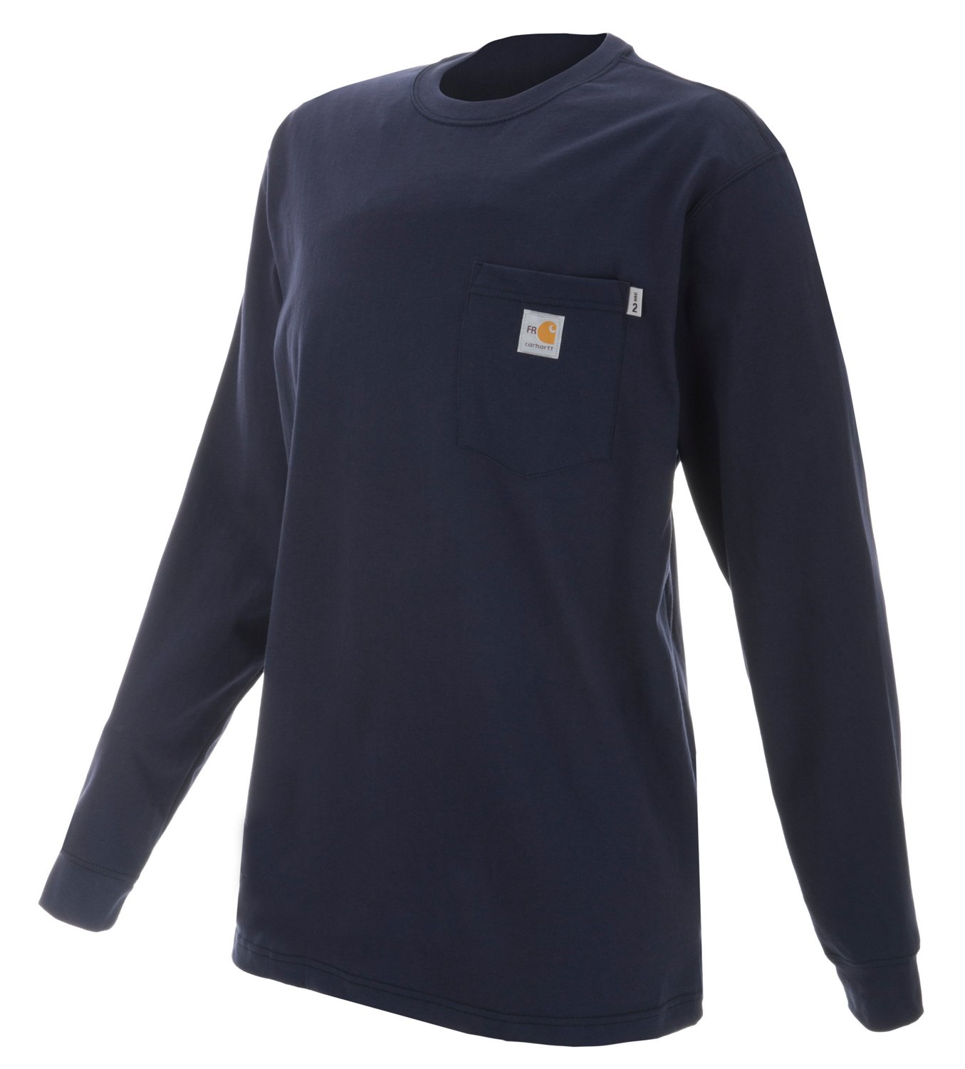 Check off everything on your to-do list while wearing the Carhartt Men's Work Dry® Flame Resistant Long Sleeve T-shirt, which features flame-resistant and moisture-wicking Force™ fabric technology to keep you protected and comfortable throughout the day. Side-seam construction helps minimize twisting and enhances mobility when you're on the move. Meets NFPA 70E requirements.