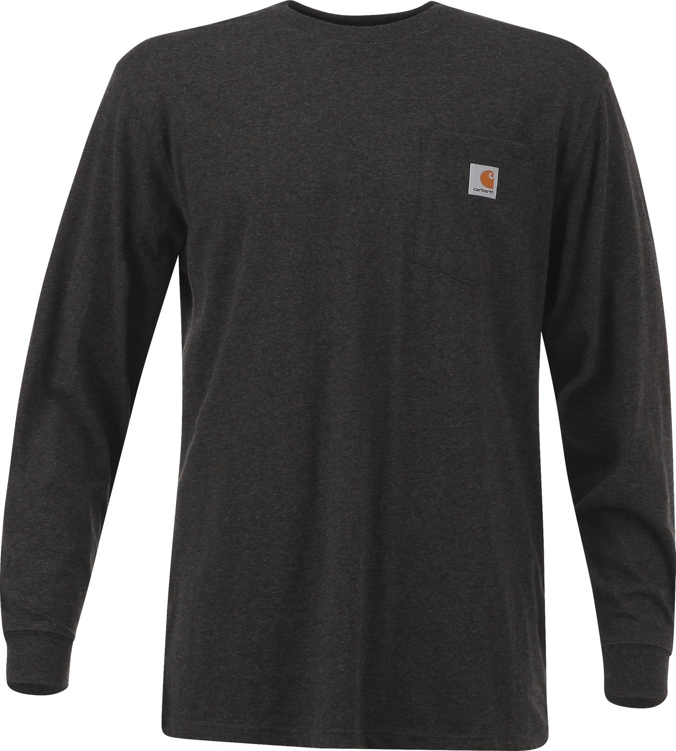 Great for layering or on its own, the Carhartt Men's Workwear Pocket T-shirt is made of 100% midweight cotton jersey (cotton and polyester blend for ash and heather gray) to provide a soft feel and comfortable wear. This long sleeve T-shirt features a left chest pocket, a crew neck and side-seam construction to minimize twisting.