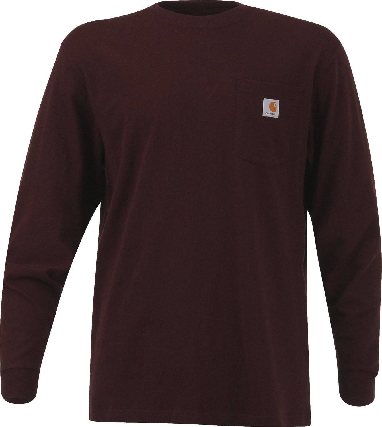Great for layering or on its own, the Carhartt Men's Workwear Pocket T-shirt is made of 100% midweight cotton jersey (cotton and polyester blend for ash and heather gray) to provide a soft feel and comfortable wear. This long sleeve T-shirt features a left chest pocket, a crew neck and side-seam construction to minimize twisting.