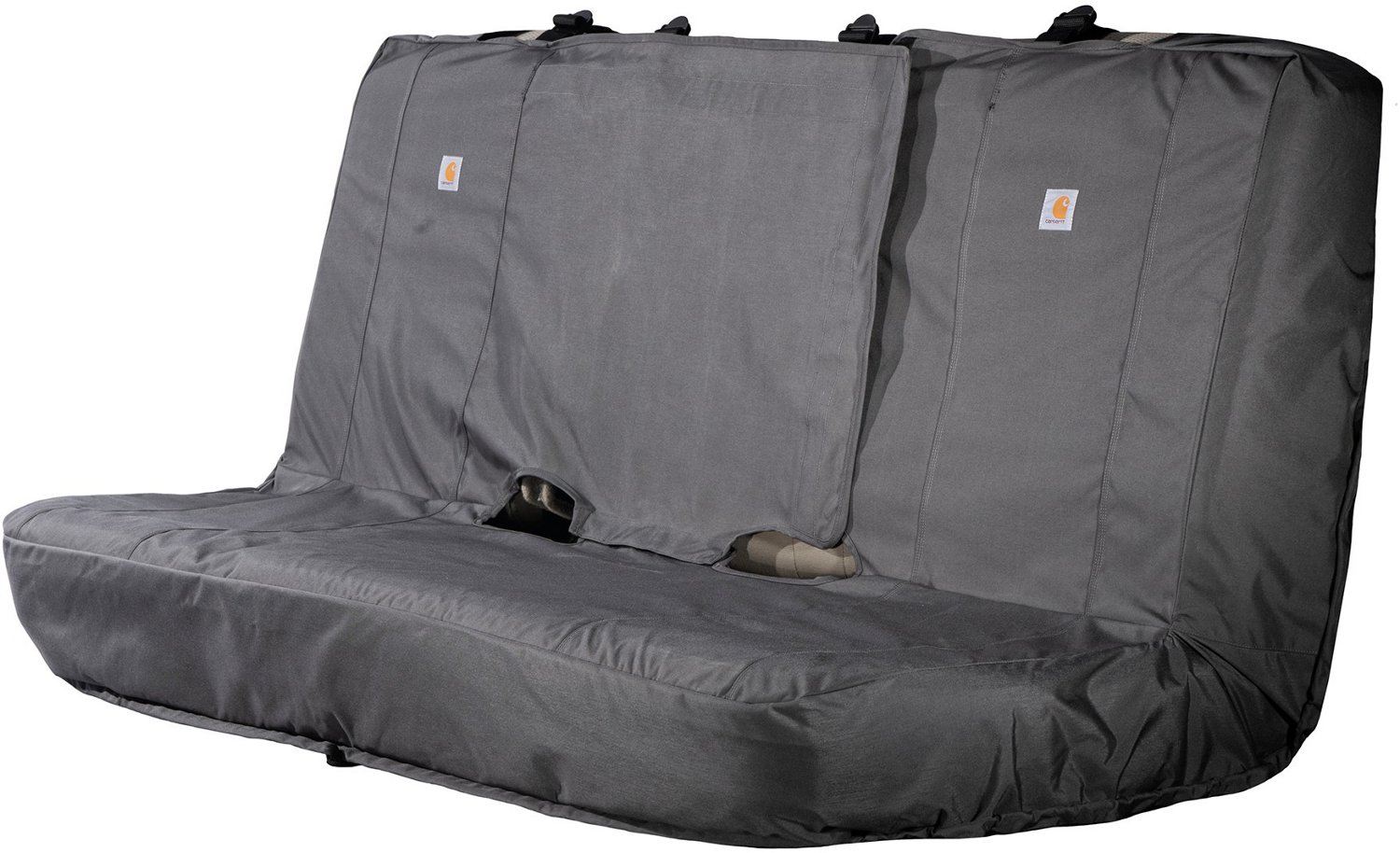 Keep the elements out of your vehicle with the Carhartt Nylon Duck Bench Seat Cover. The nylon blend provides comfort, while the rain defender design protects against water damage. The seat cover is designed to protect against stains and damage.