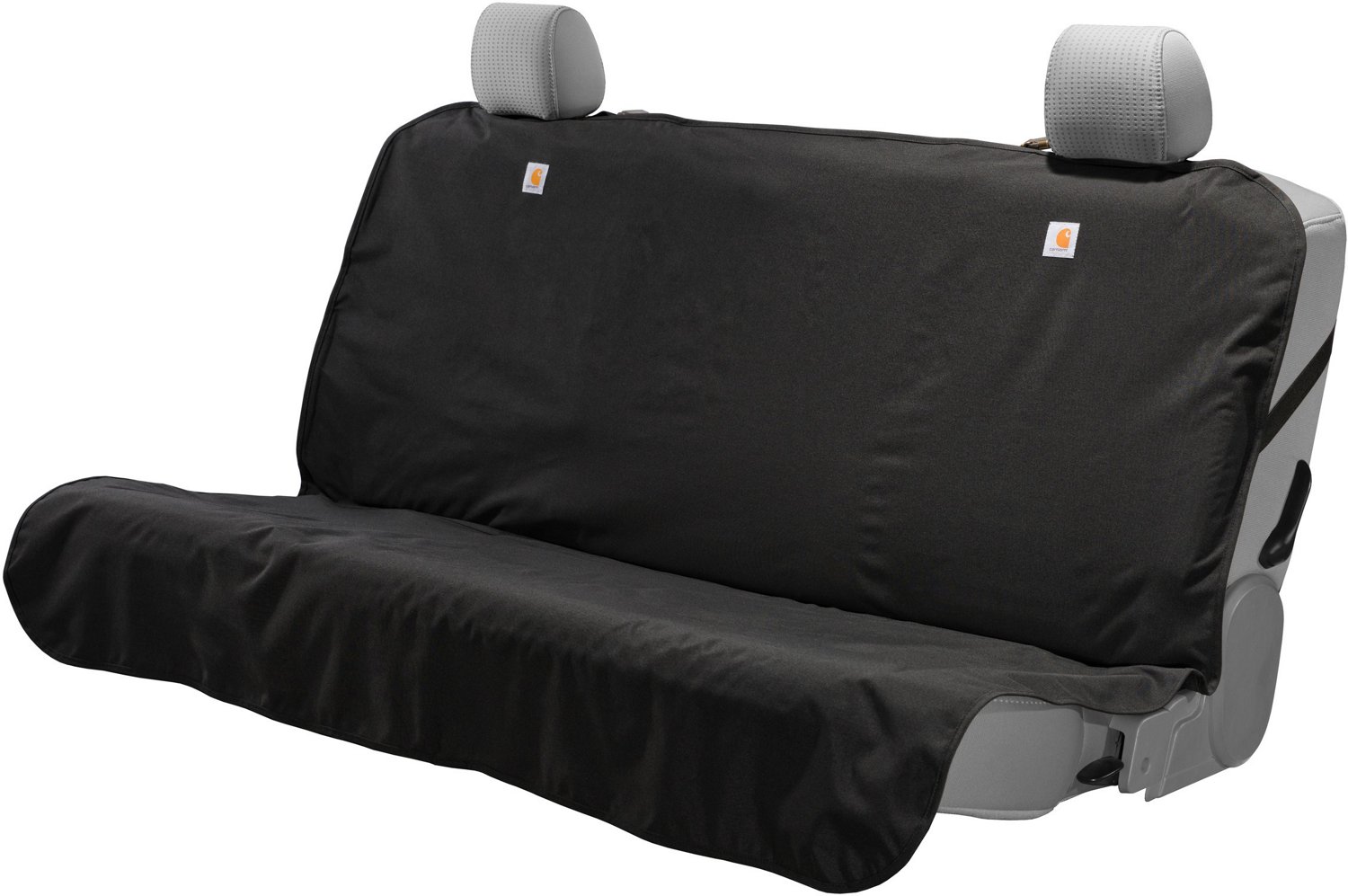 Protect your car's seats on the go with the Carhartt Quick Fit Duck Bench Seat Cover. The 500D nylon Cordura canvas fabric offers comfort and the Rain Defender durable water repellent encourages lasting use in wet conditions, while the 4-Corner Fit construction with a hook and loop closure and a cinch string helps ensure a secure fit.