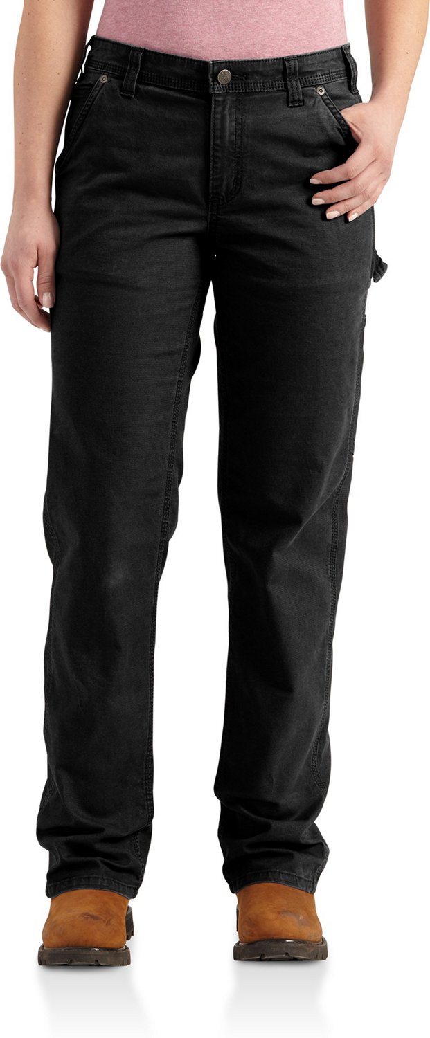 Enjoy the comfort and durability of the Carhartt Women's Crawford Original Fit Pant, which is made of 98% cotton and 2% spandex canvas with Rugged Flex® fabric technology to offer ease of movement. Utility pockets and a loop keep your go-to items close by, while the contoured waistband helps prevent gapping at the back. Mid rise. Slightly fitted through the hip and thigh.