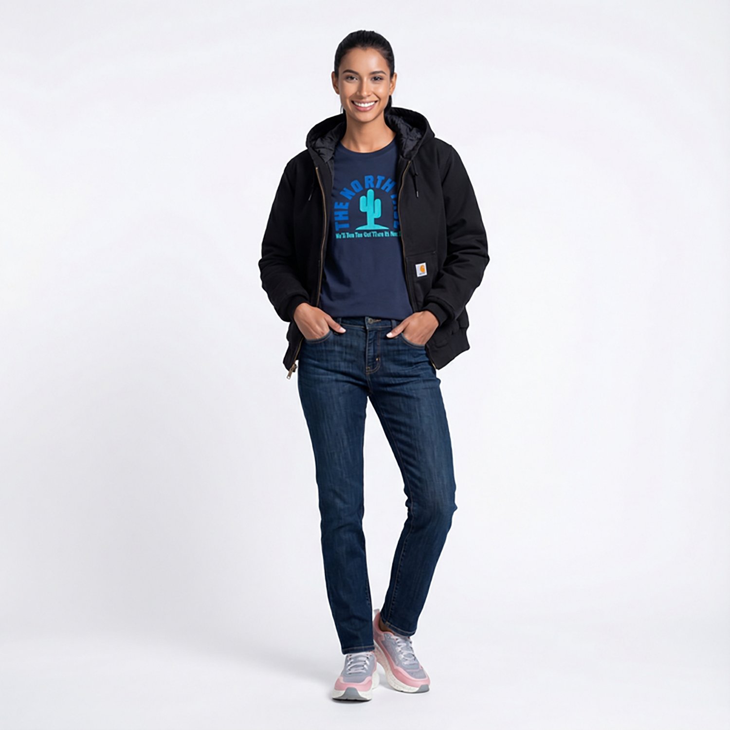 Keep the elements from slowing you down when you sport the Carhartt Women's Duck Quilt-Lined Active Jacket. The 100% ringspun cotton-duck shell with Thinsulate™ featherless insulation offers an ultrasoft, warm and cozy feel, while the Cordura® sleeve reinforcements and triple-stitched seams ensure wear that withstands your daily demands.