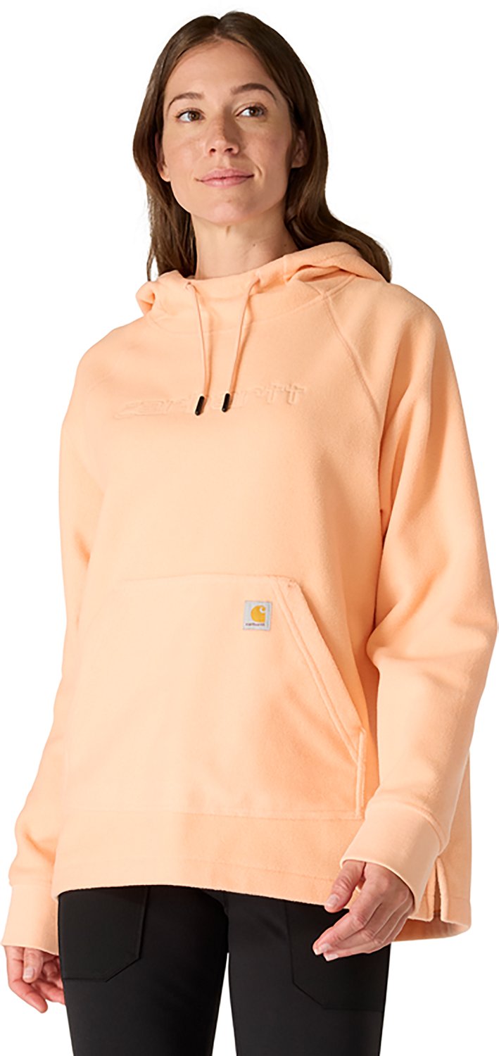 Perform in quality, comfortable clothing by wearing the Carhartt Women's Force Fleece Sweatshirt. The vented side hem lets you move freely throughout the day, and the oversized fit helps you feel at ease. FastDry® technology is built into the fabric to limit water or swear impacts, and you can use the front pouch pocket to carry and keep objects in.