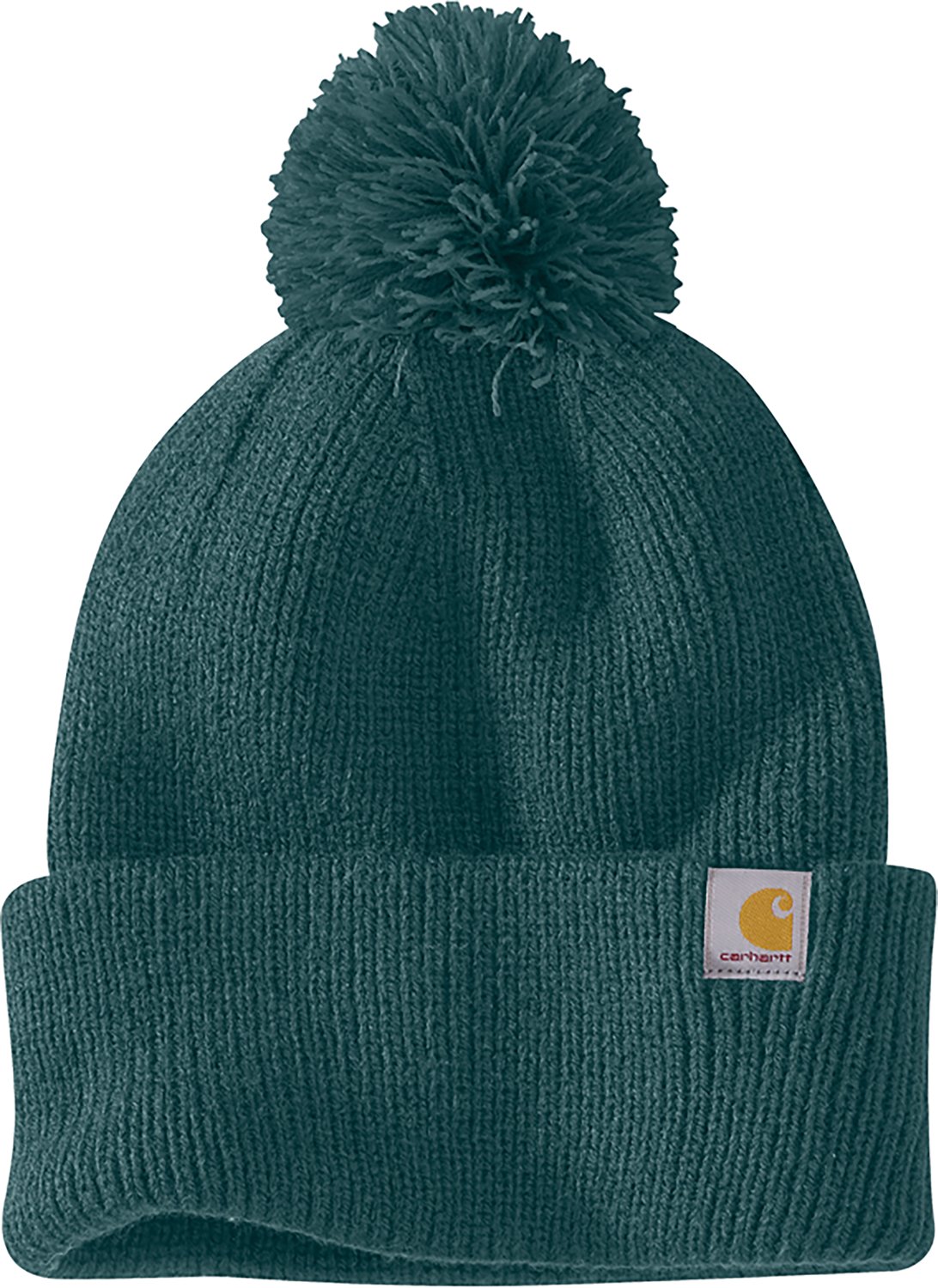 Stay cozy when the temperature drops with the Carhartt Women's Knit Pom-Pom Cuffed Beanie. Rib-knit acrylic delivers a soft feel without itching or irritation, while a folded cuff and pom-pom top create a classic winter look.