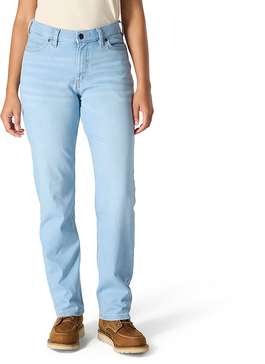 Comfort is the order of your workday when you wear these Carhartt Women's Rugged Flex Essential Jeans to your jobsite. Lightweight, and comprised of durable cotton-polyester-elastane stretch denim, they provide a pleasant feel with every movement. Smoothing front pockets, a drop-in phone pocket and lined back pockets, including a double-back pocket, provide ample room for the duty roster's essentials.