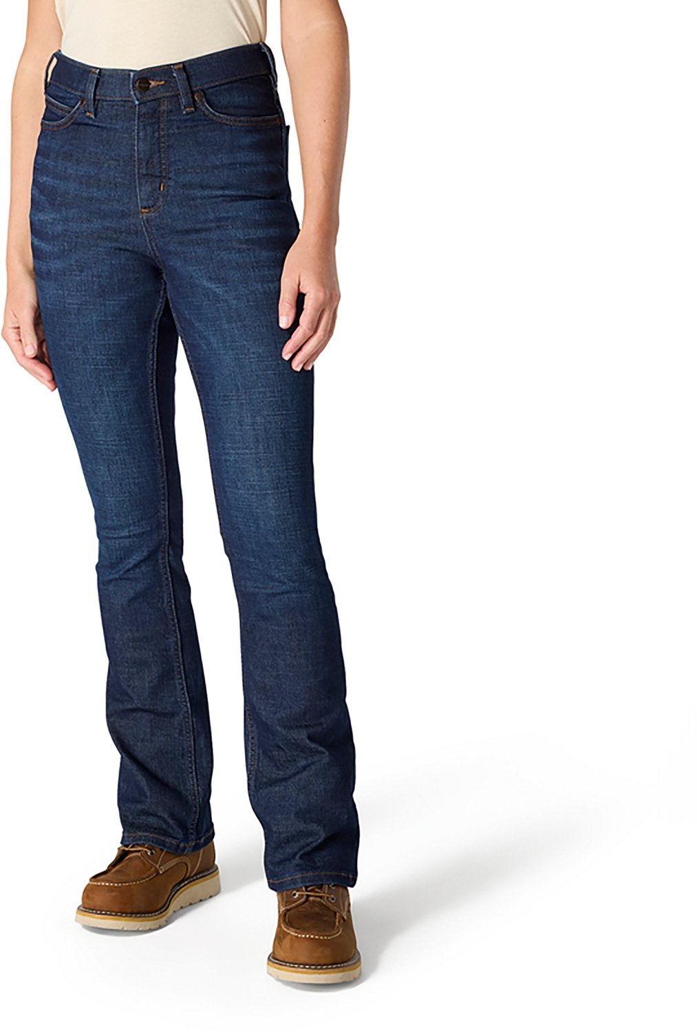 Stay comfortable on the jobsite when you wear these Carhartt Women's Rugged Flex The Tiller Jeans, featuring stretchy yet durable cotton-polyester-elastane denim that adapts to every movement. Smoothing front pockets and lined back pockets provide plenty of room for the workday's essentials, and a flexible waistband offers coverage and a snug fit.