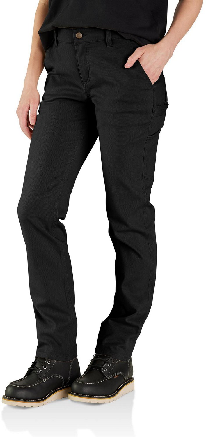 Get ready for the work day with the Carhartt Women's Rugged Flex Work Pants. The cotton and spandex micro sand canvas fabric provides a comfortable feel, while the Rugger Flex technology promotes mobility. The high rise design in the back offers coverage, and the stretch waistband delivers a custom fit.