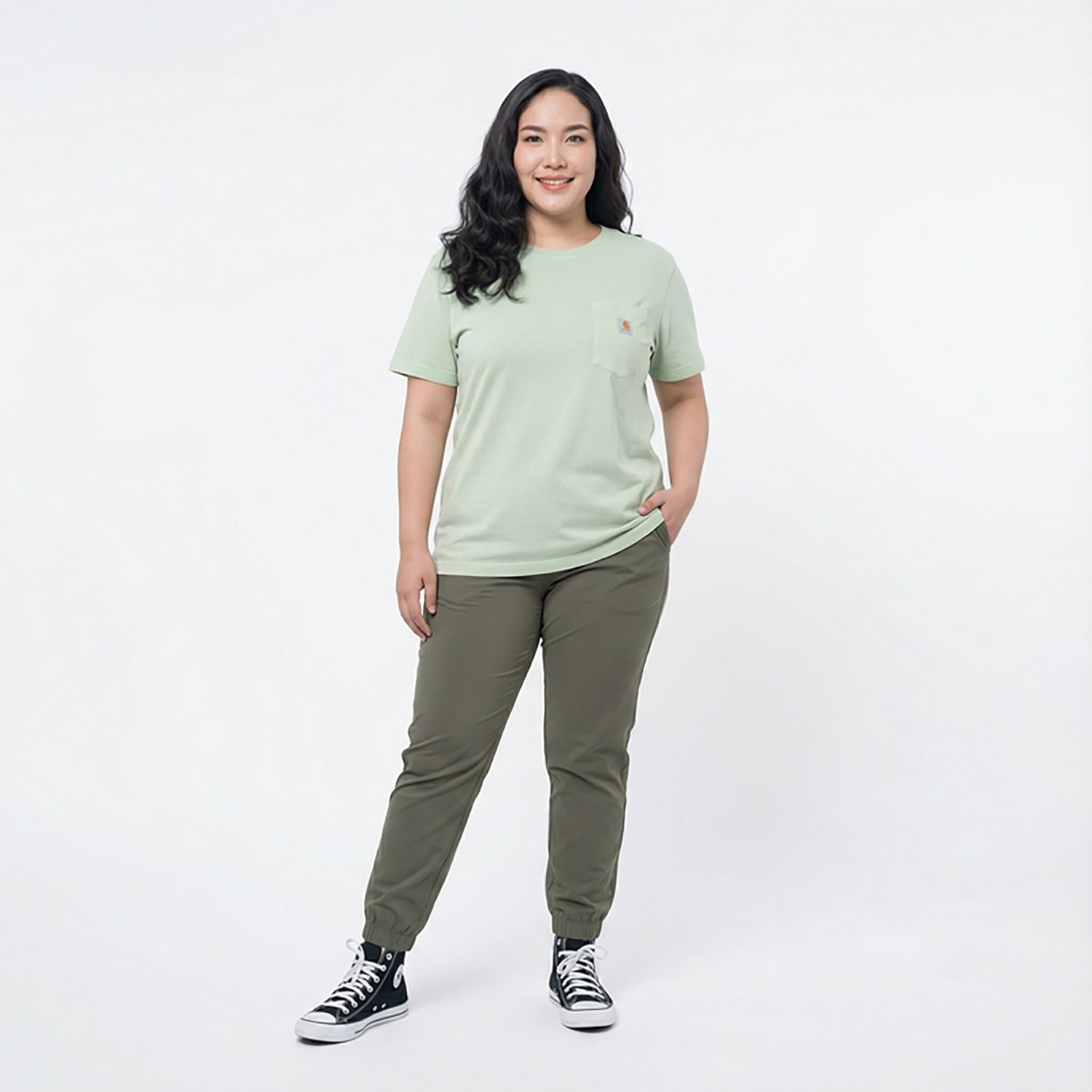 Be comfortable no matter what you're doing in the Carhartt Women's Short Sleeve Garment Dye Pocket T-shirt. This t-shirt is made from preshrunk midweight cotton that feels soft and lightweight. The garment-dyed pattern and left-chest pocket add updated style to a classic look.