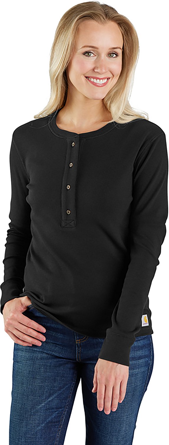 Add a soft layer to your look with the Carhartt Women's TENCEL Fiber Series Relaxed Fit Long Sleeve Henley Shirt. The cotton blend provides a comfortable feel, while the 4-button placket allows for easy on/off.