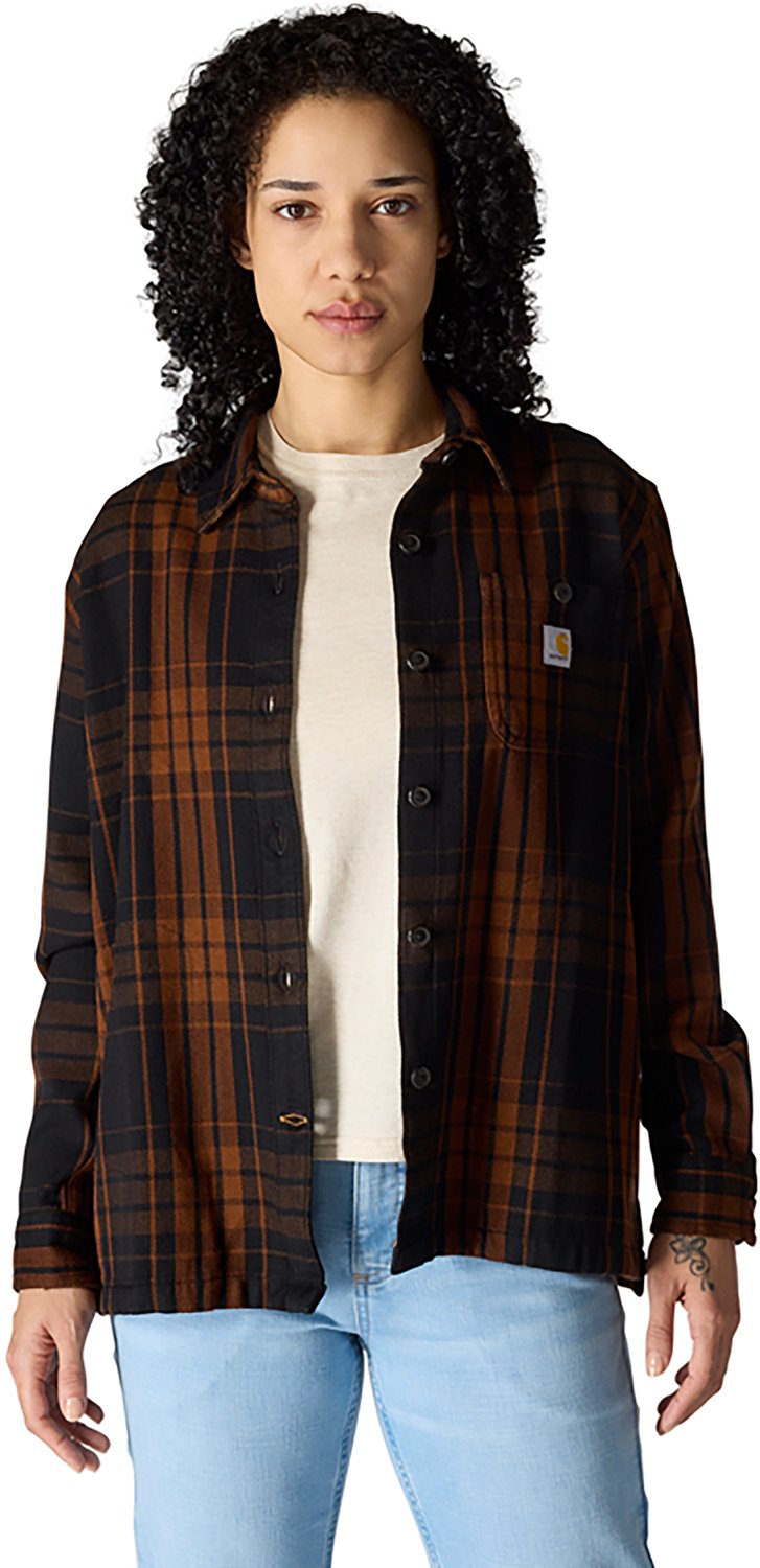 Get to work with the Carhartt Women's TENCEL Twill Plaid Button Up Shirt. The cotton blend provides a comfortable feel, while the Rugged Flex technology promotes mobility. The plaid pattern offers a stylish look.