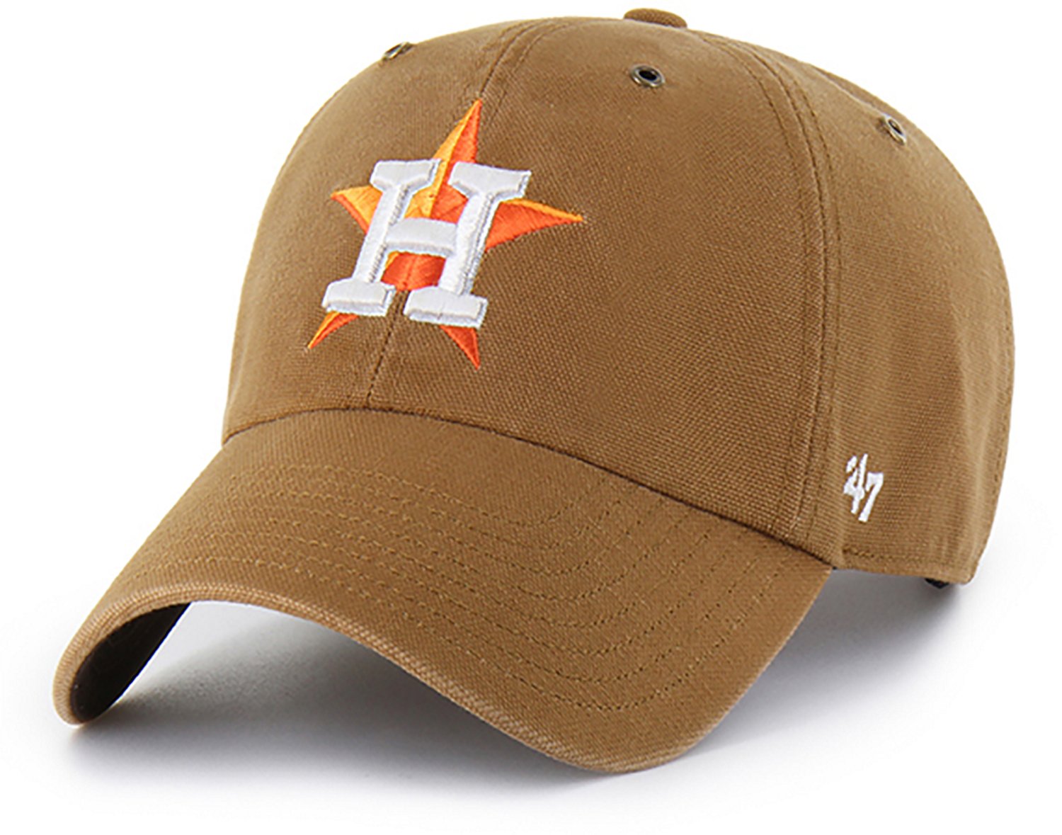 Prepare to watch the next game by throwing on the Carhartt x '47 Adults' Astros Clean Up Cap. This cap is made of duck cloth with brass eyelets to offer ventilation and features an embroidered team logo on the front to help prove you are a loyal fan.
