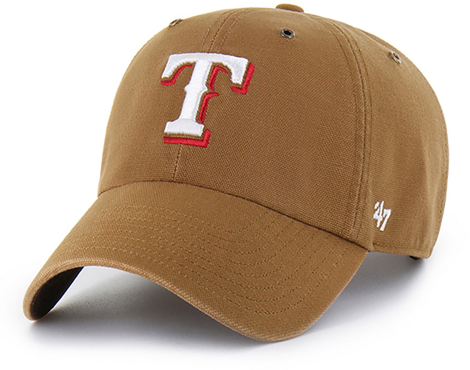 Prepare to watch the next game by throwing on the Carhartt x '47 Adults' Rangers Clean Up Cap. This cap is made of duck cloth with brass eyelets to offer ventilation and features an embroidered team logo on the front to help prove you are a loyal fan.