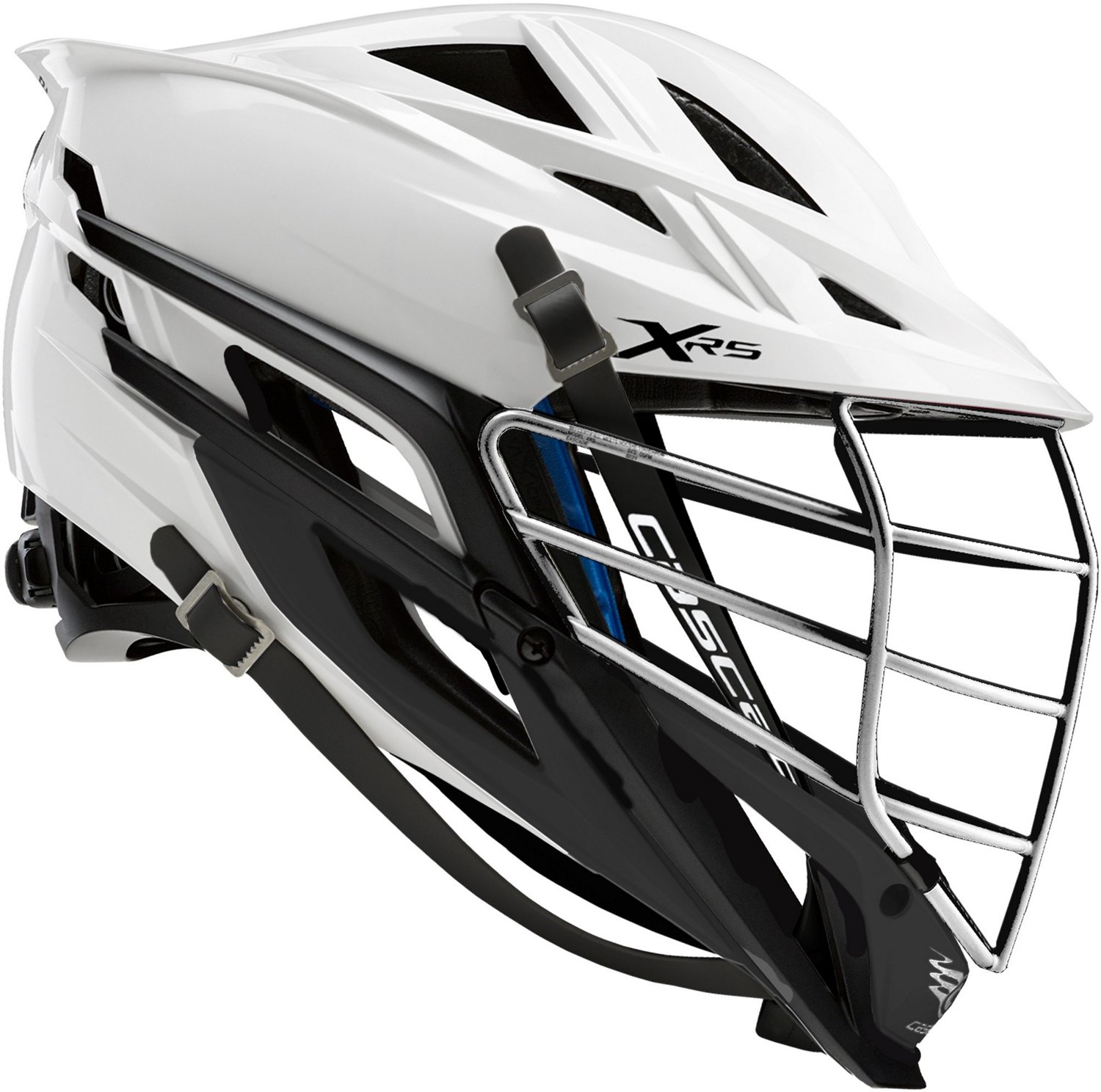 Stay prepared to dominate the field in the Cascade XRS 2021 Lacrosse Helmet. The Tri-Liner system with a 360 degree fit offers comfortable, protective wear. The XFLO ventilation panels supply a breathable feel and the VIXION system helps increase peripheral vision for enhanced field of view. The PowerPress technology offers improved sight lines and rigidity, while the XRS JAW reinforced dual material jawbone design delivers improved stiffness. Made in USA.