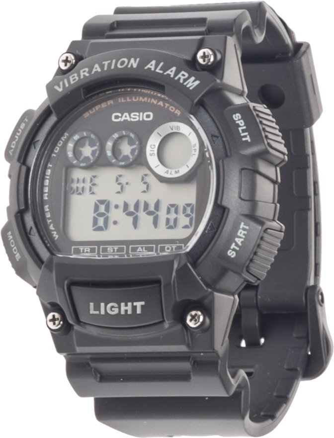 The Casio Men's Sport Watch features a digital display that shows the time, day and date with an extra-bright LED that helps make the face easy to read. The vibration alarm provides a discreet alert, and the watch features a countdown alarm and timer and a stopwatch function. Water-resistant to a depth of 100 m.