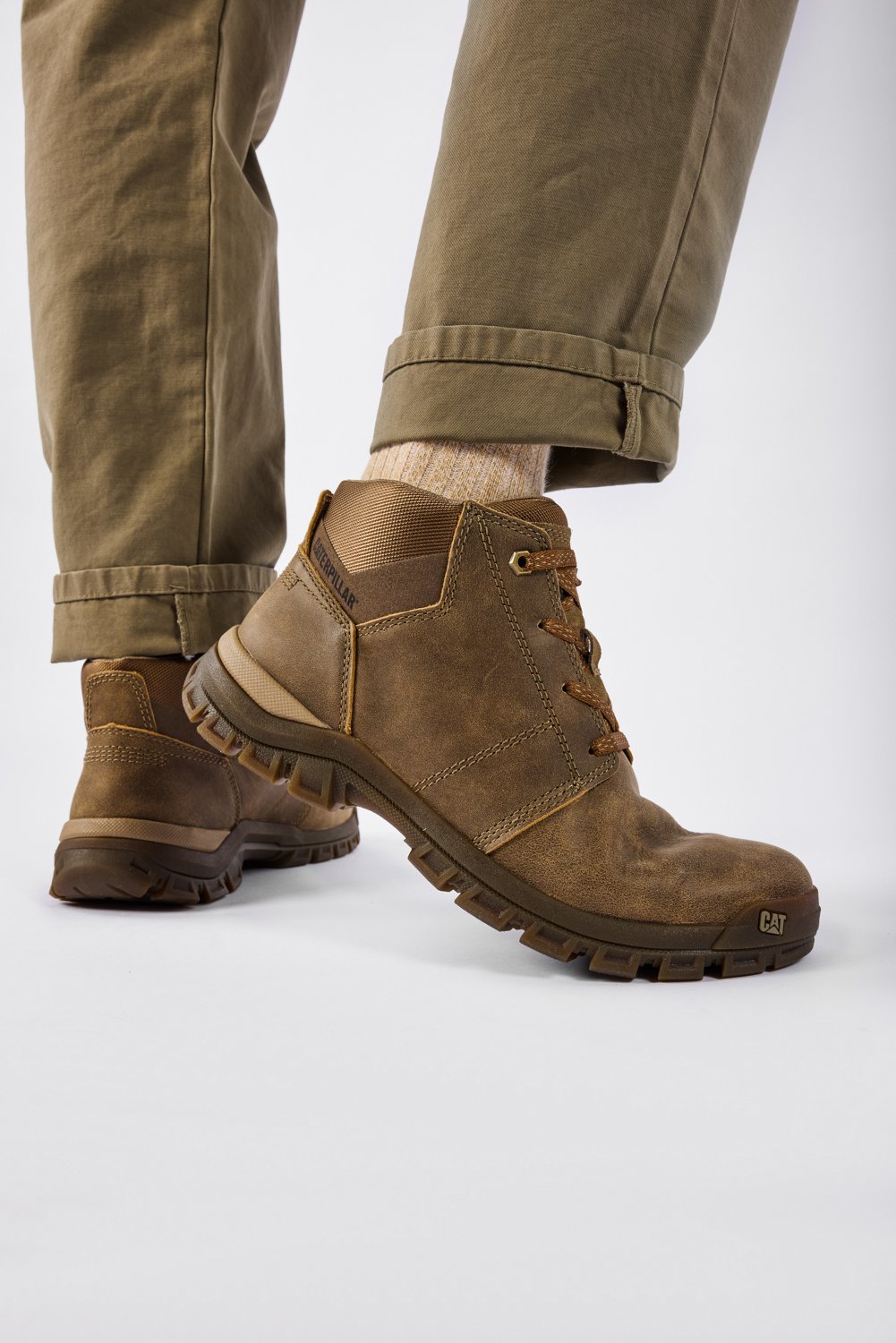 Stay comfortable and stylish at work and while out in these CAT Men's Threshold Chukka Boots. They have full-grain leather uppers for durability and a rugged style, and the boots are lined with wicking nylon mesh to help keep your feet fresh.