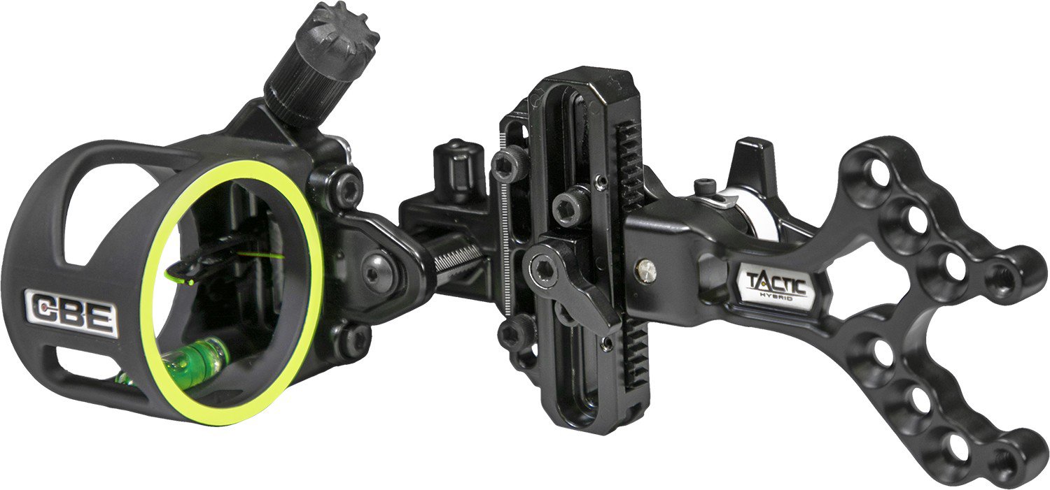 Equip your bow with the CBE Tactic Hybrid Sight. The Hybrid Drive elevation gang adjustments with visual laser-engraved markings allow for precise adjustments, while the 12-inch wrapped fiber delivers brighter pins. The multi-position mounting holes let you customize your bow.