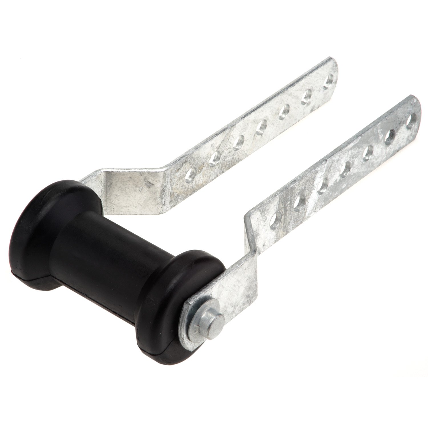 Brackets mount the black keel roller to 3" wide trailer tongues