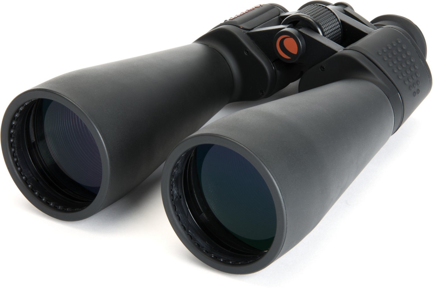 For the sharpest astronomical and terrestrial viewing, you need the Celestron SkyMaster 25x70 Binoculars. These large aperture porro prism binoculars feature a protective rubber covering and multi-coated optics for sharp, clear views. The 70 millimeter objective lens and 25x magnification offers maximum image brightness and clarity, while the long eye relief is ideal for eyeglass wearers.