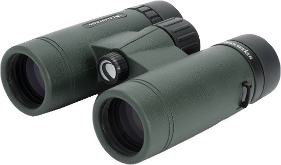 Watch birds in their natural habitats or stalk prey in the woods with the Celestron Trailseeker Binoculars, which feature fully multicoated optics and BaK-4 prisms for great contrast and resolution and bright views. The metal multistop twist-up eyecups allow correct eye positioning, and the wide field of view lets you quickly acquire and follow your subject. Nitrogen purged to prevent internal fogging and waterproof to keep out the elements.