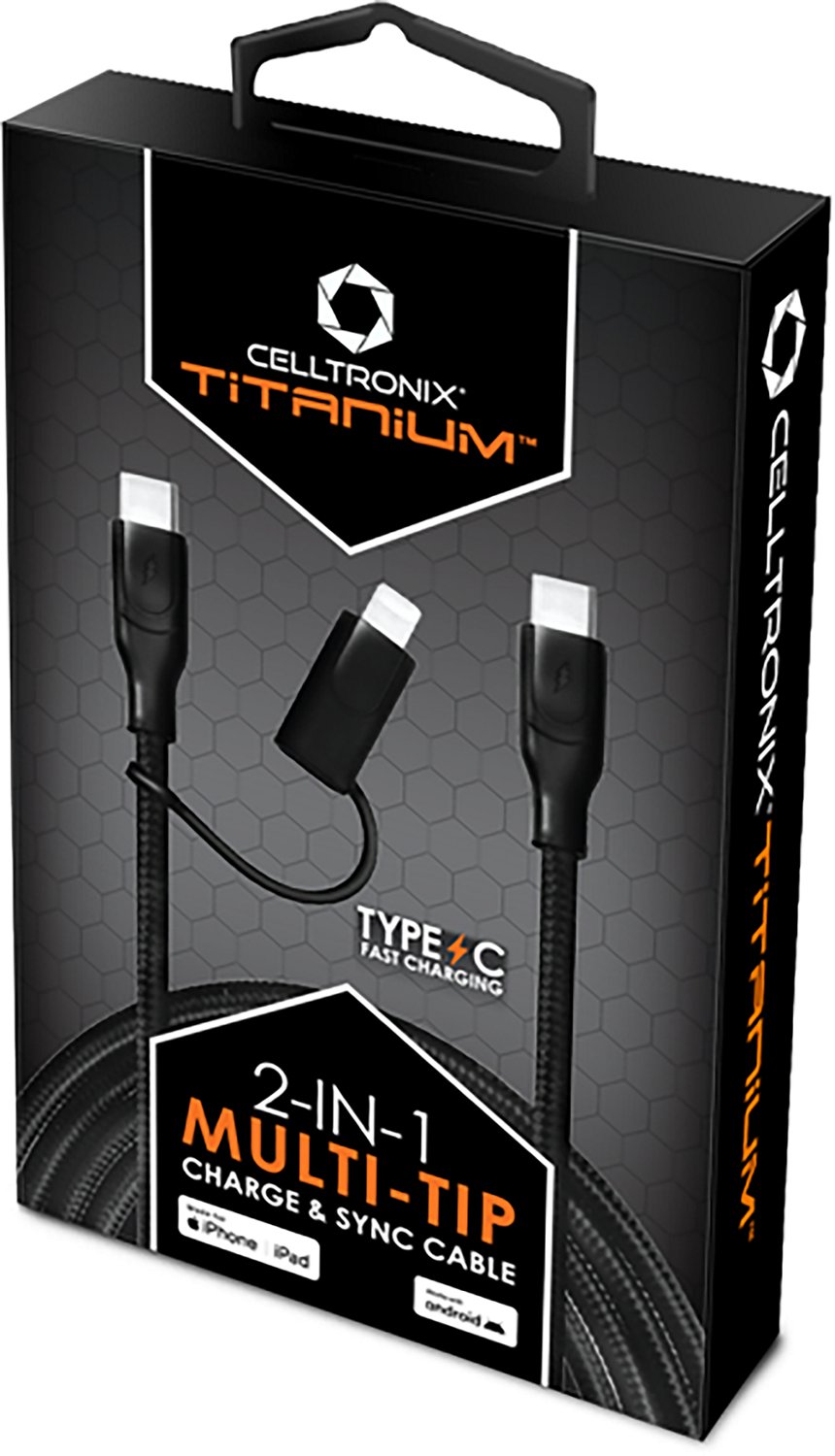 Charge your devices with the Celltronix Multi-Tip Fast Charging Cable. The double nylon braid cable body and PVC cable tip ensure lasting durability.